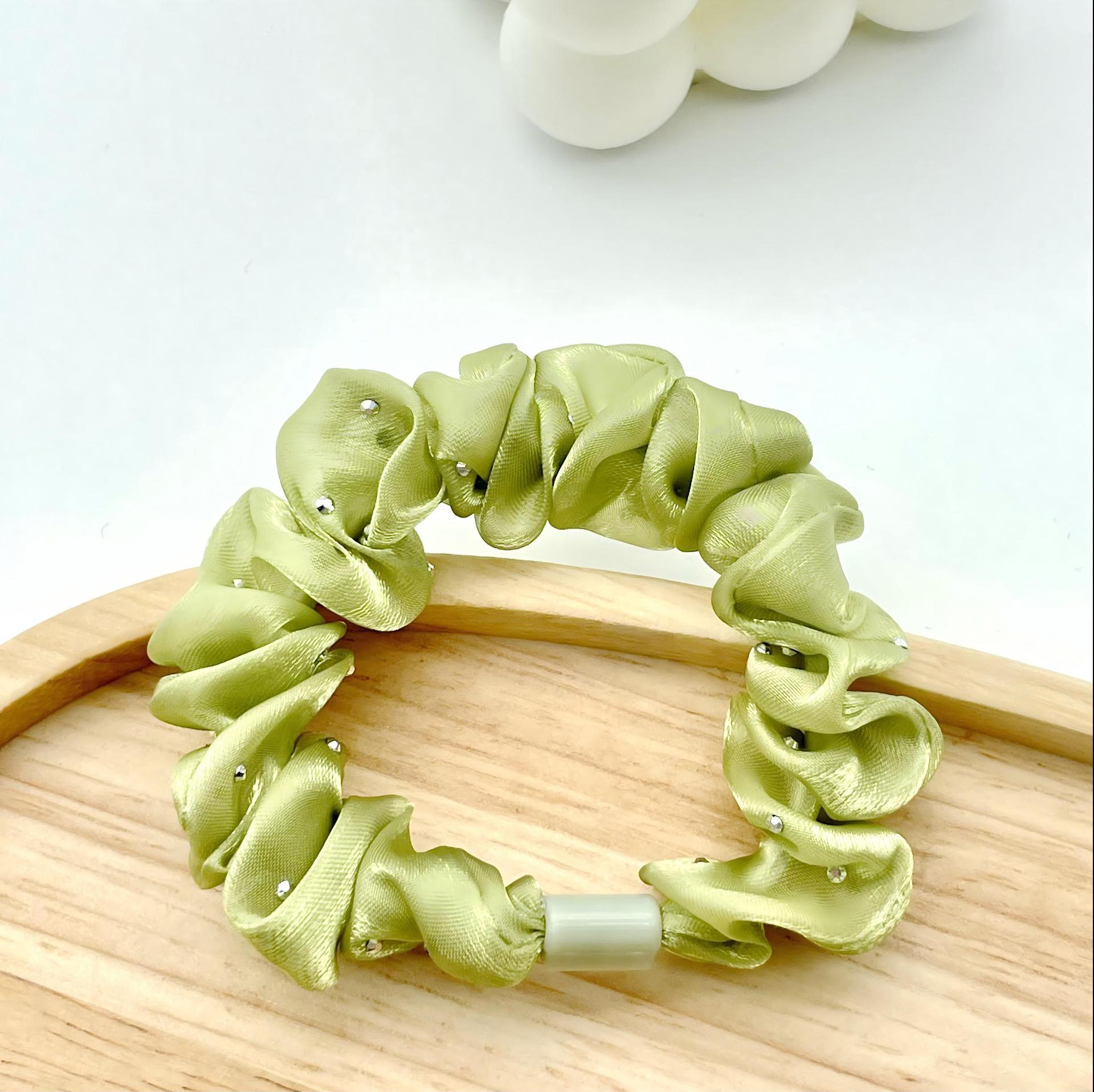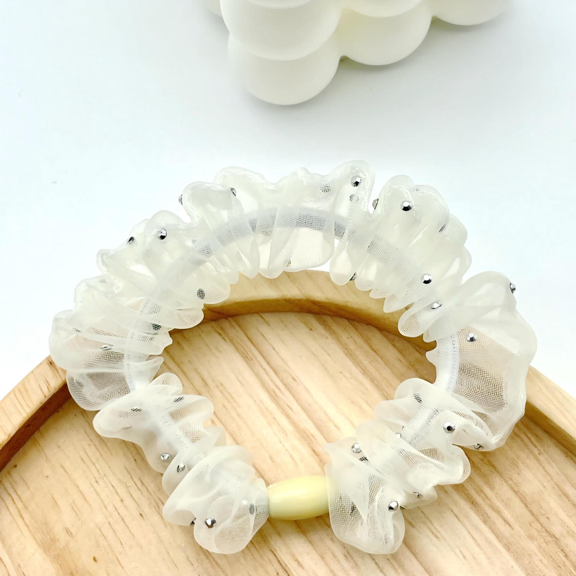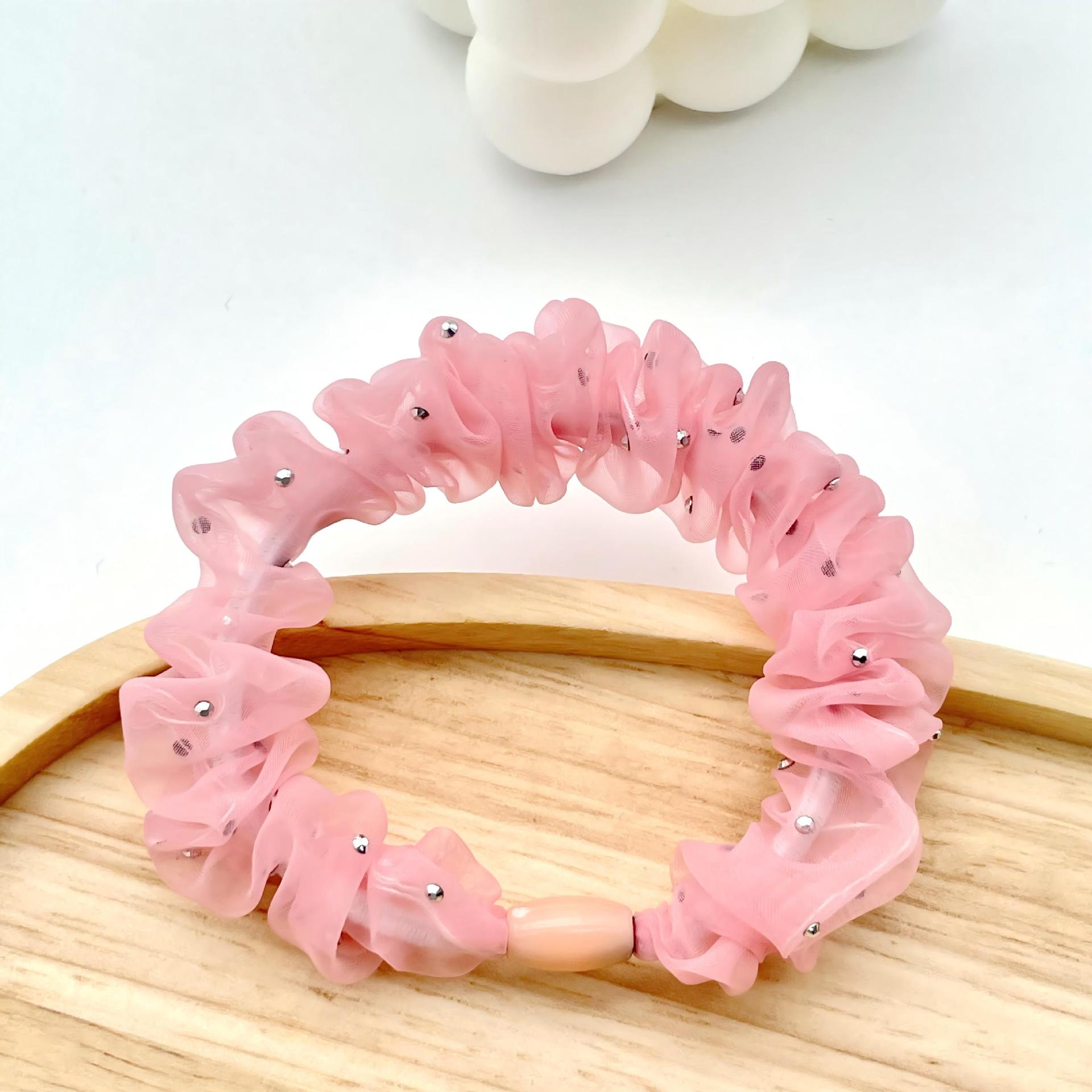 Cross-border silk large intestine hair tie, hot diamond lace, French organza, elegant hair flower, pig large intestine hair tie, women's hair accessory