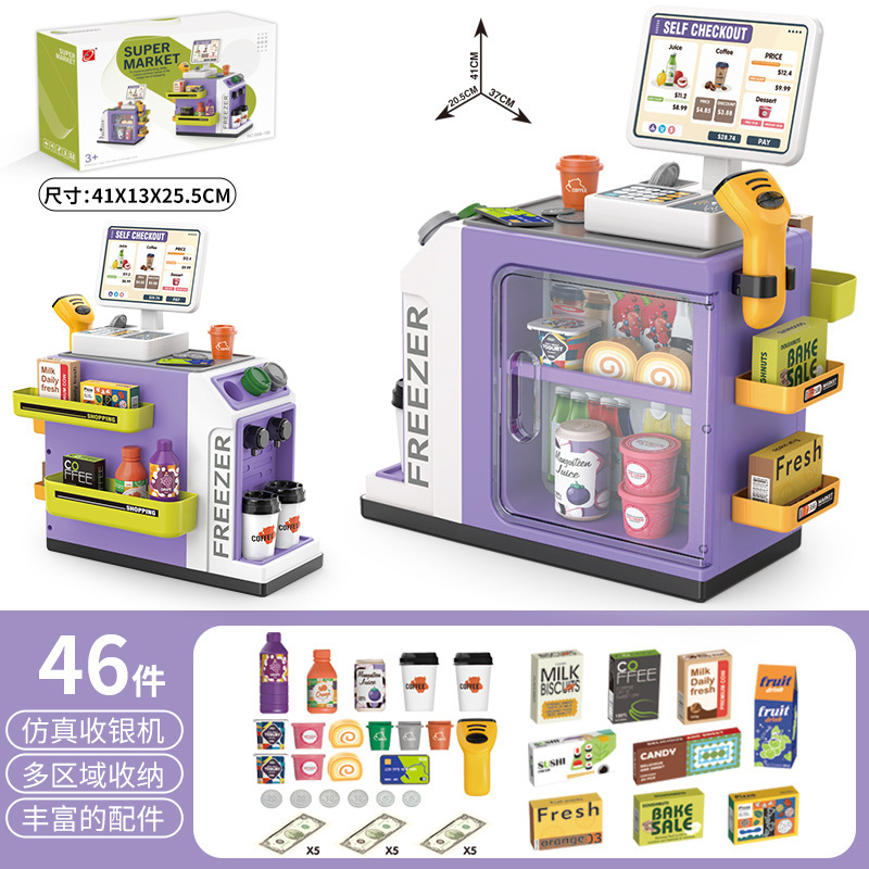 Cross-border simulated card swiping shopping, house playing, desserts, coffee, beverages, audio-visual simulation cash register, children's supermarket, toys