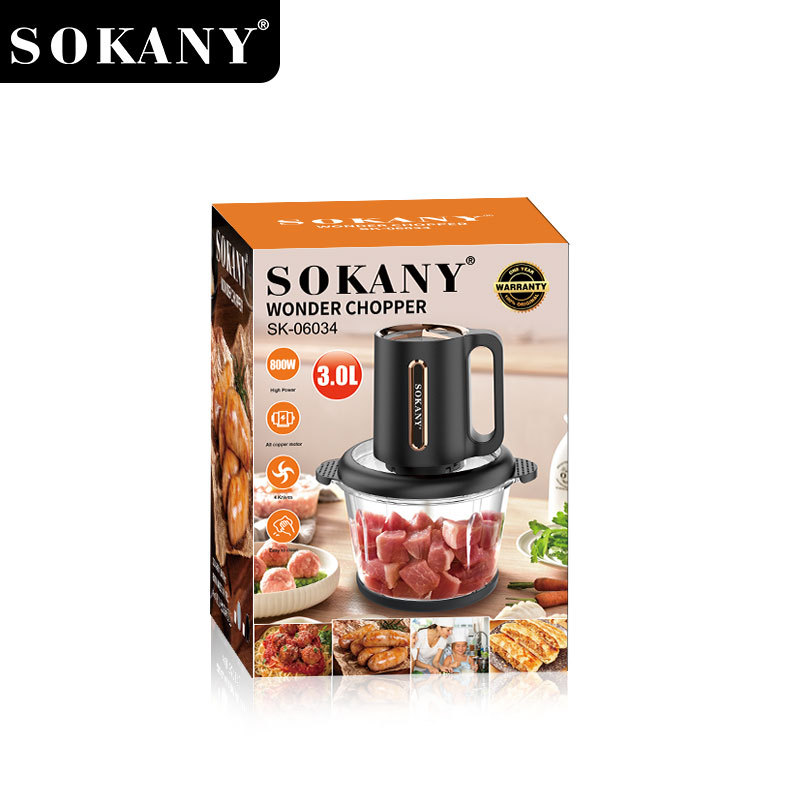 Cross-border SOKANY06034 meat grinder, household 3L glass bowl vegetable cutter, meat filling mixer, food processor 06034