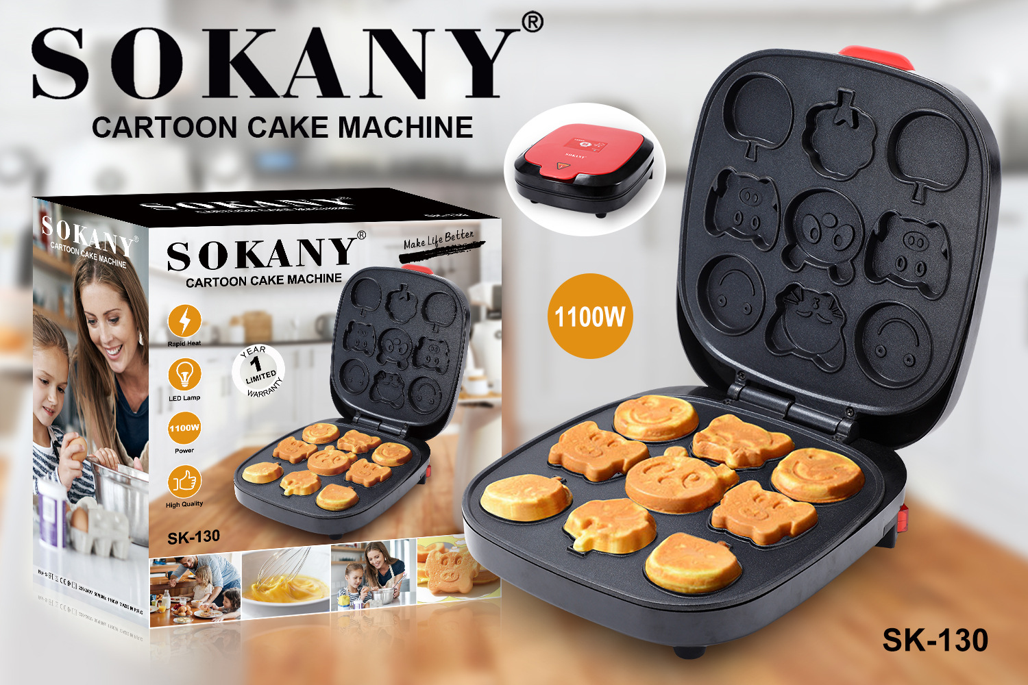 Cross-border Sokany130 cake machine, cartoon pattern children's bread machine, baking dessert waffle sandwich machine
