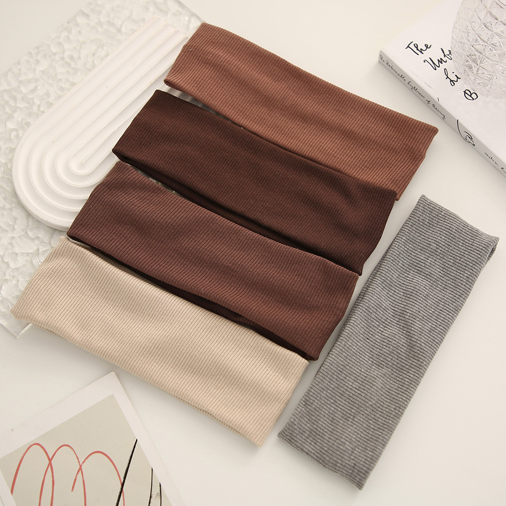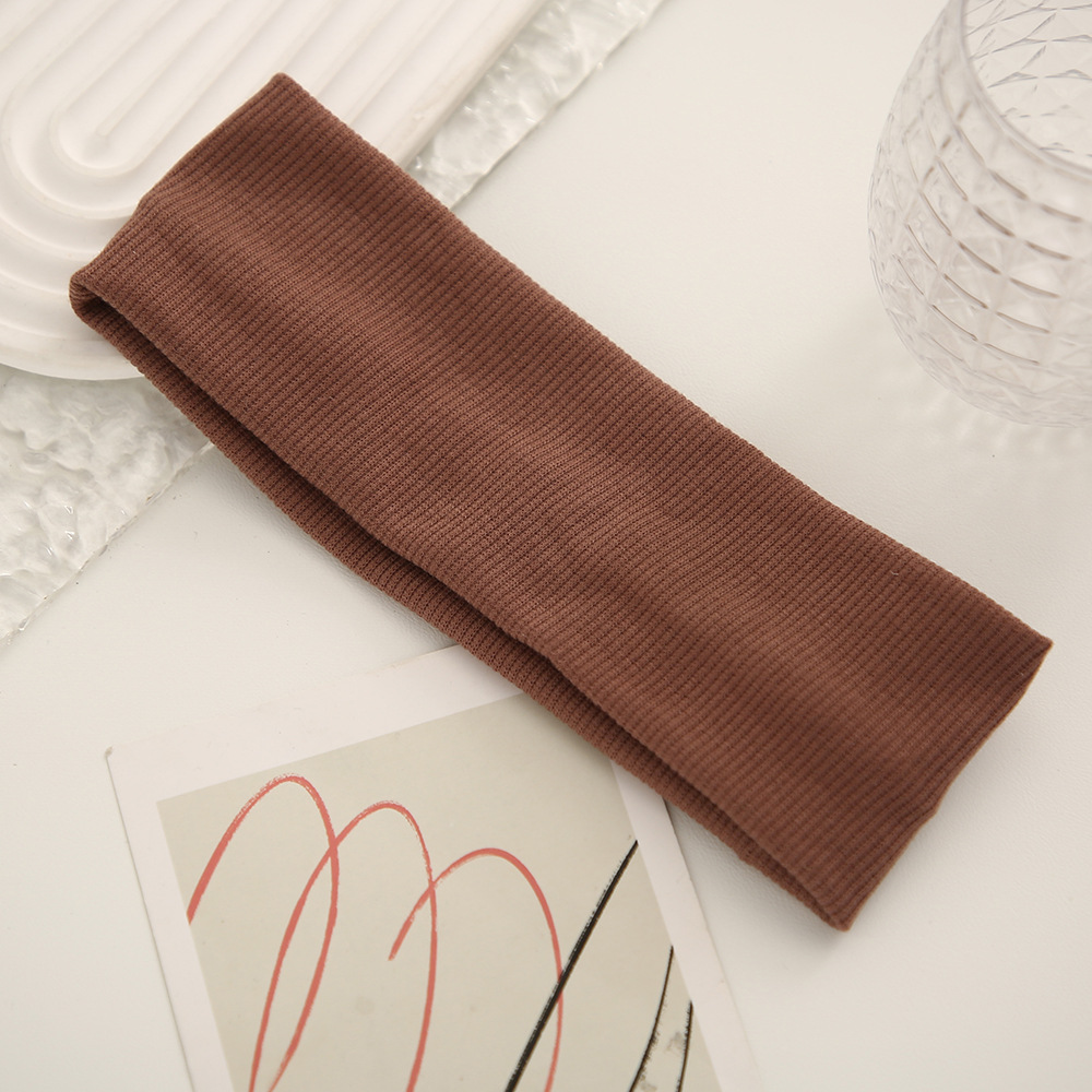 Cross-border solid-color hair band, women's outdoor sweat-absorbing sports headscarf, knitted high-elasticity wide-edge hair band, face wash hair band