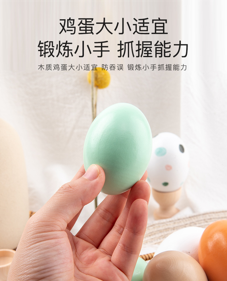 Cross-border solid wooden simulation egg model, children's hand-drawn graffiti, house play toys, prank eggs, fresh food, fresh eggs