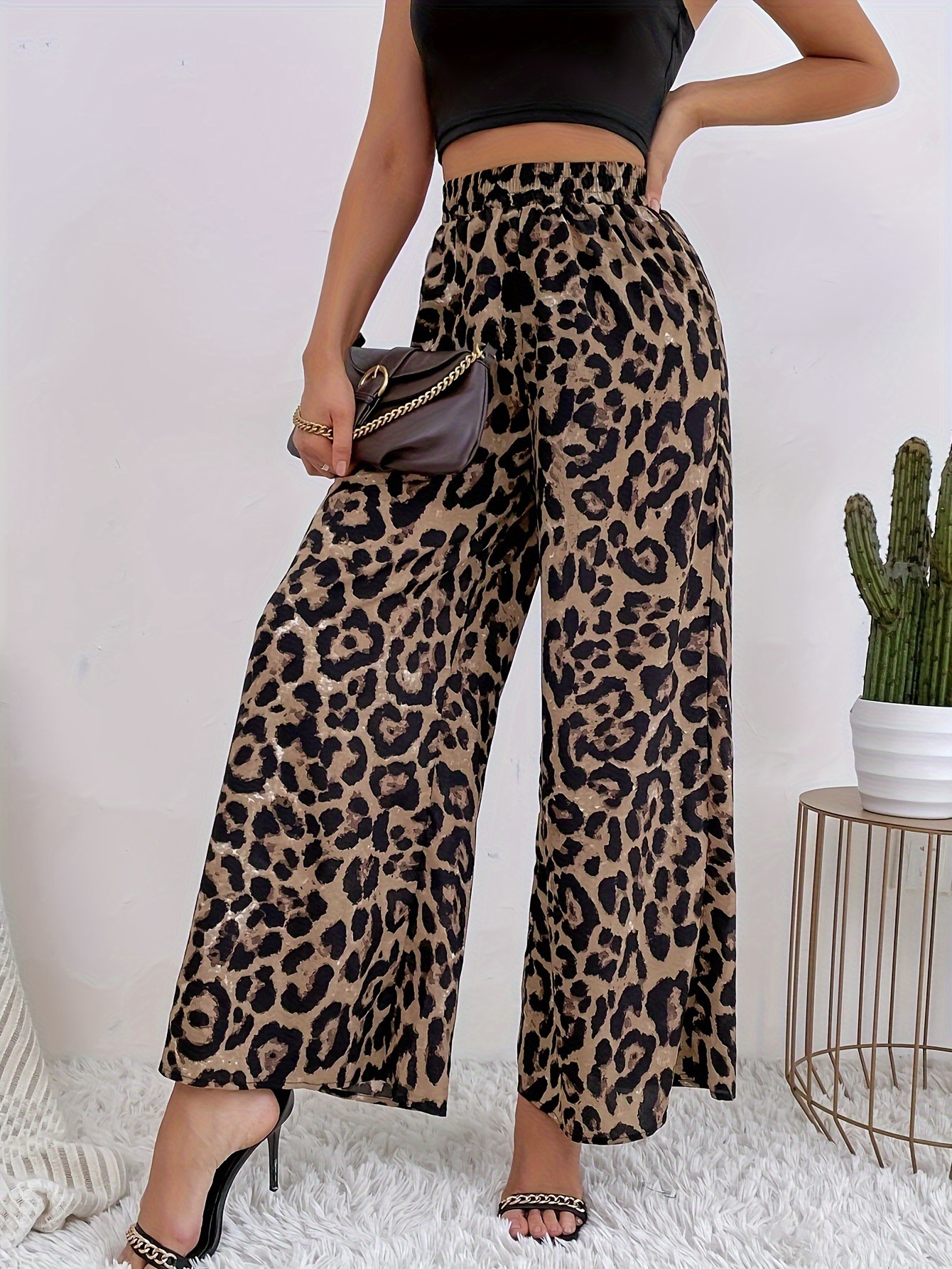 Cross-border spring European and American women's fashion classic leopard print elastic waist drape loose casual style wide-leg pants