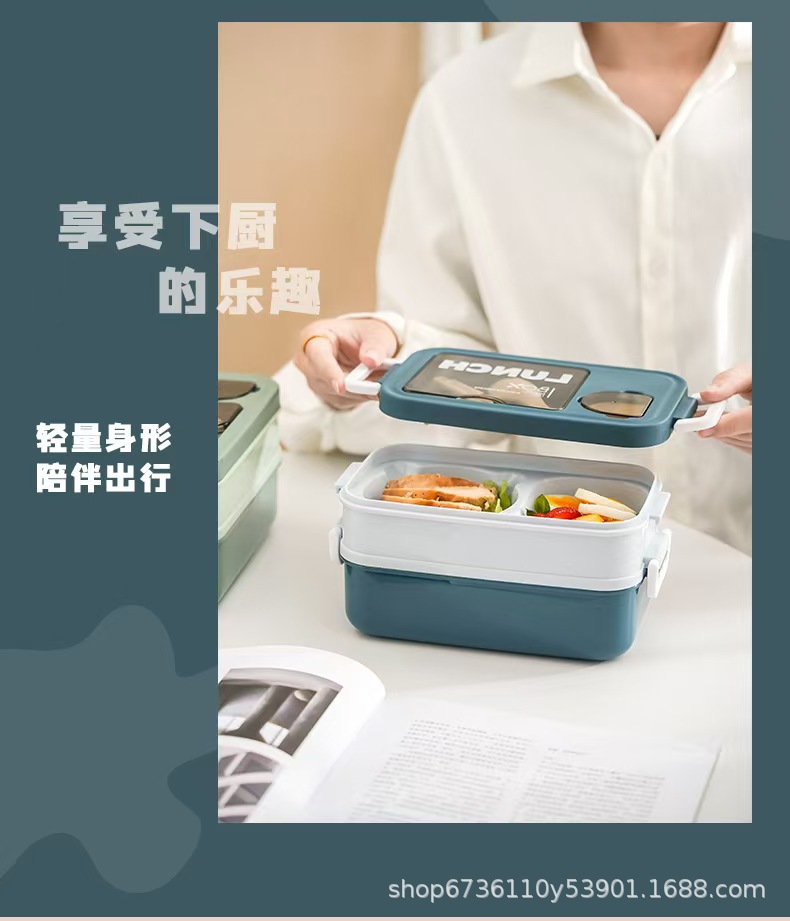 Cross-border student compartments bento, food-grade children's fruit, double-layer insulated office worker lunch box, heated by microwave oven