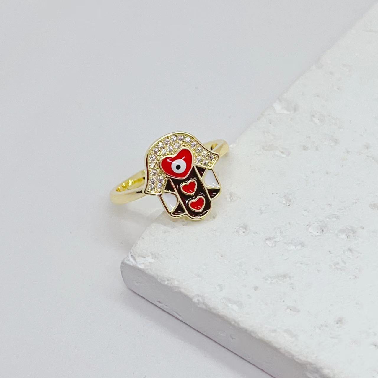 Cross-border supply from Europe and America: copper-plated real gold, colored oil-dripping zircon, Devil's eye, palm eye, personalized open ring