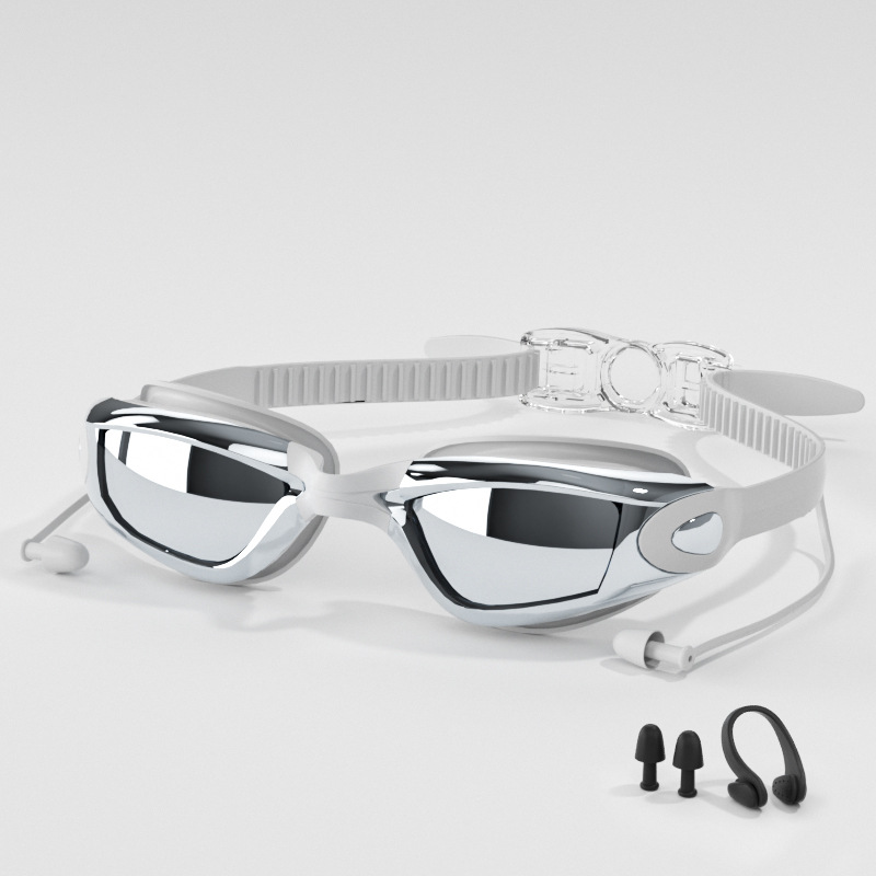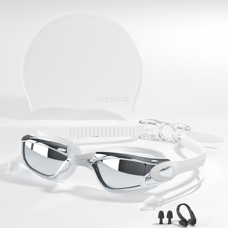 Cross-border swimming goggles, adult men and women, electroplated high-definition waterproof and anti-fog swimming glasses, myopia set, swimming cap, nose clip, earplugs