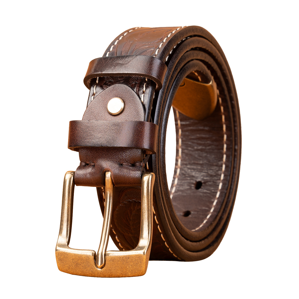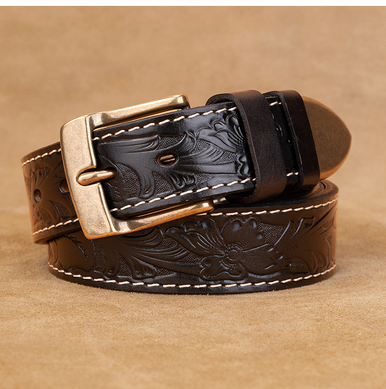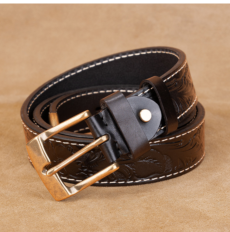 Cross-border trade belt men's belt with needle buckle embossed real cowhide, simple, casual, business versatile men's belt, trendy