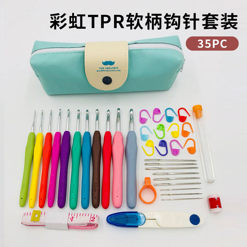 Cross-border wholesale full set of handmade crochet and woolen knitting tools, crochet bags, rainbow TPR soft-handle crochet sets