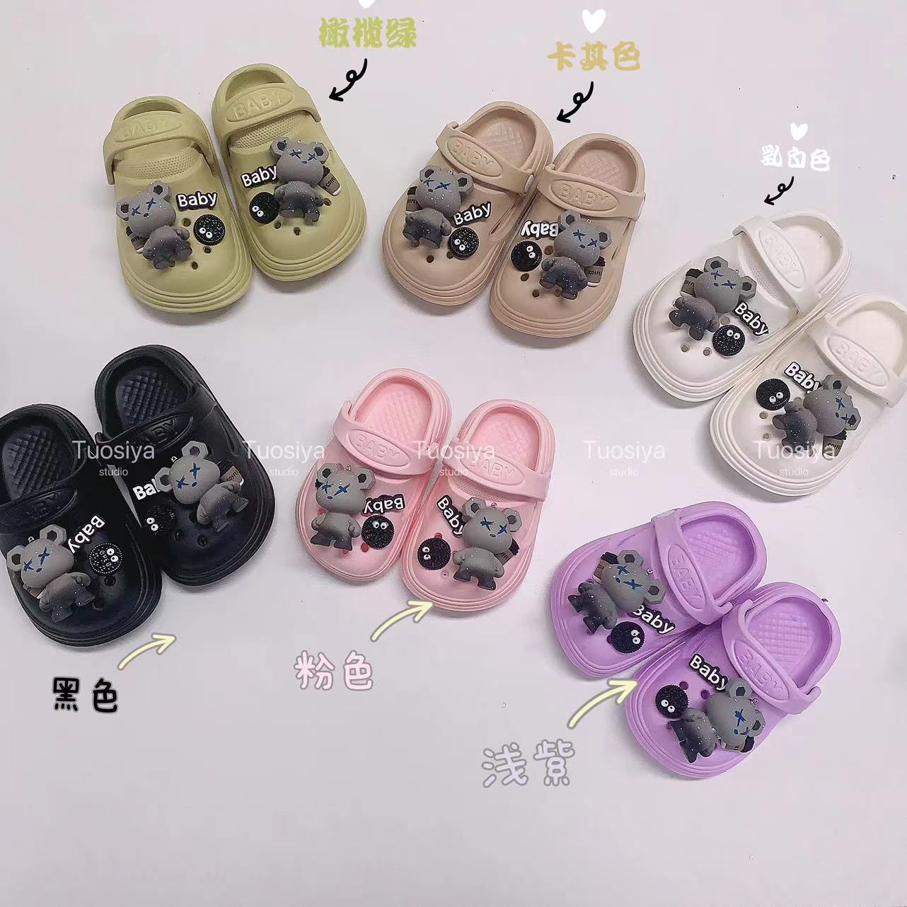 Cross-border wholesale of children's Baotou Crocs, cartoon bestsellers, violent bear DIY indoor and outdoor summer new boys' and girls' shoes