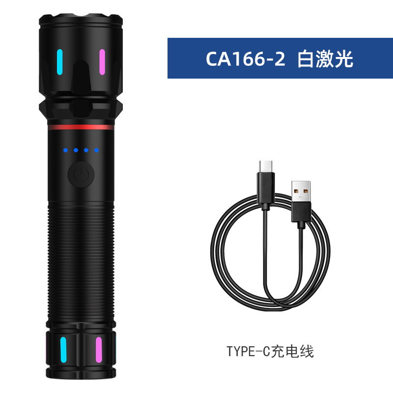Cross-border wholesale Pailide Strong light flashlight, fluorescent strip, telescopic zoom, aluminum alloy long-range white laser flashlight