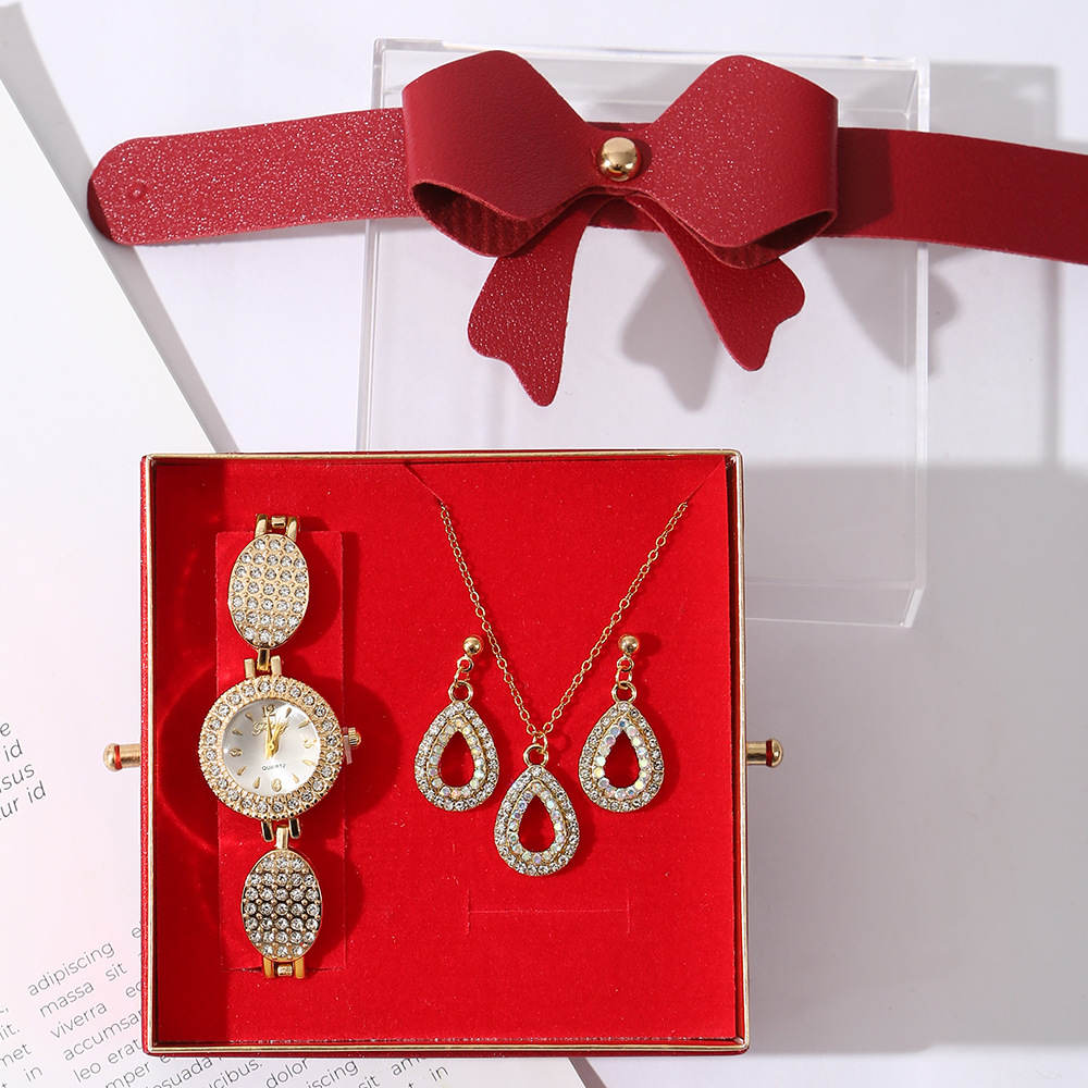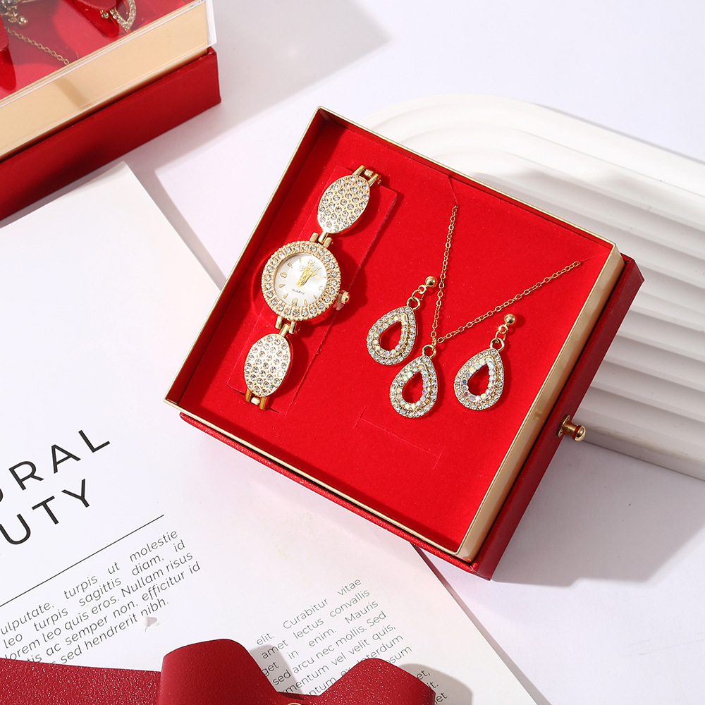 Cross-border women's full-diamond watch, earrings and necklace set, a niche high-end light luxury diamond-encrusted jewelry set for women in stock