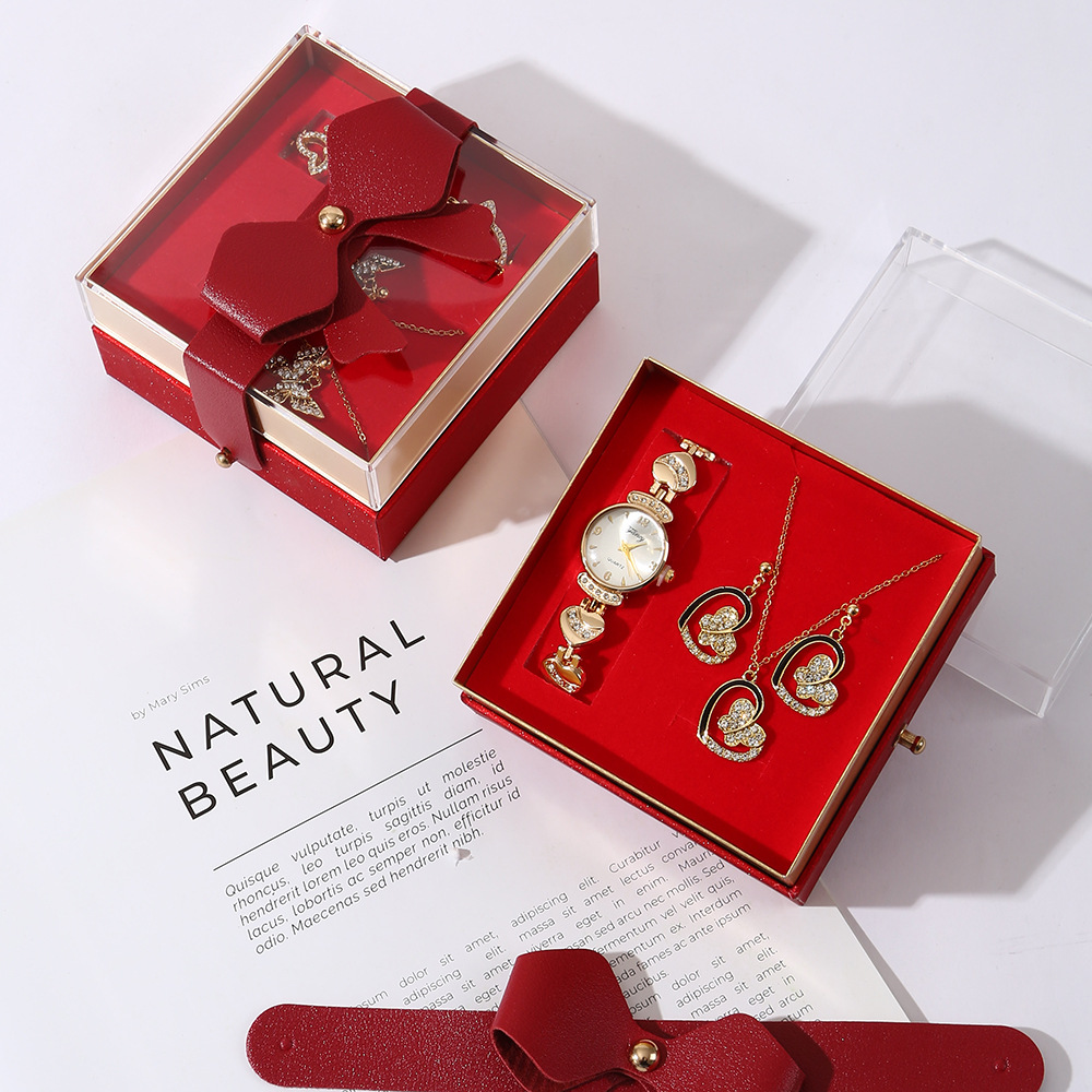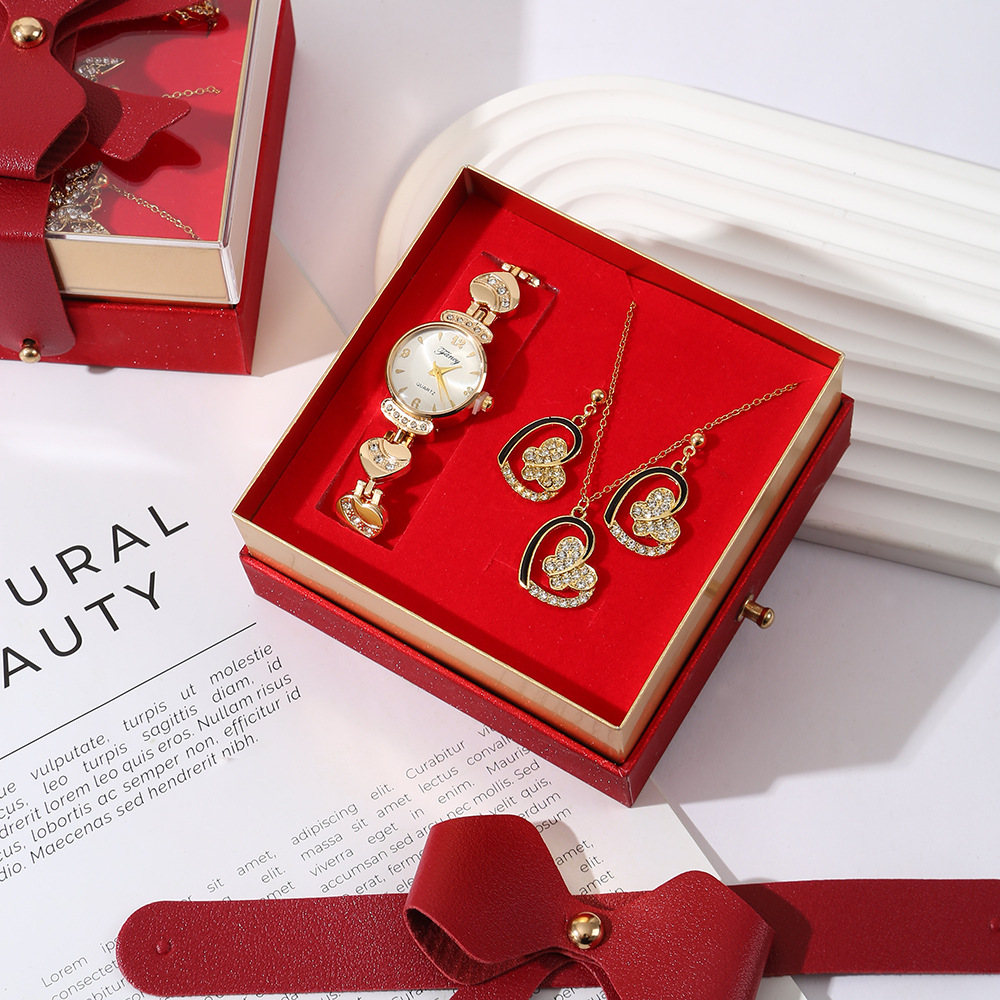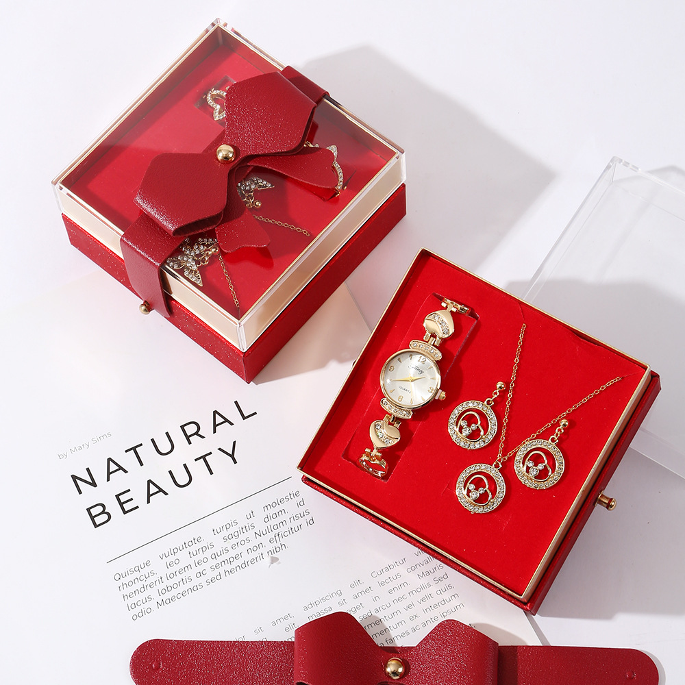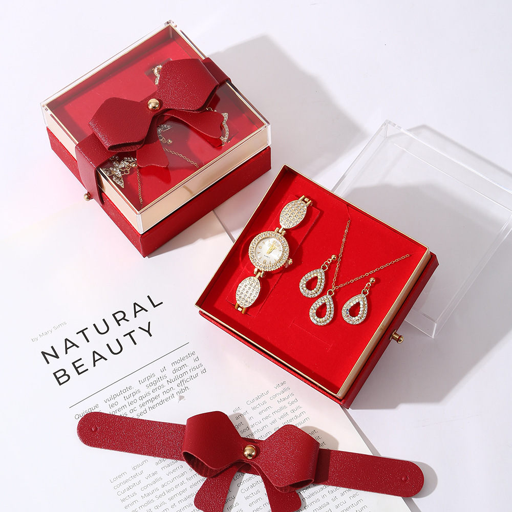 【w2993-5】 4-piece Set (Watch + Necklace + Stud Earrings + Gift Box)