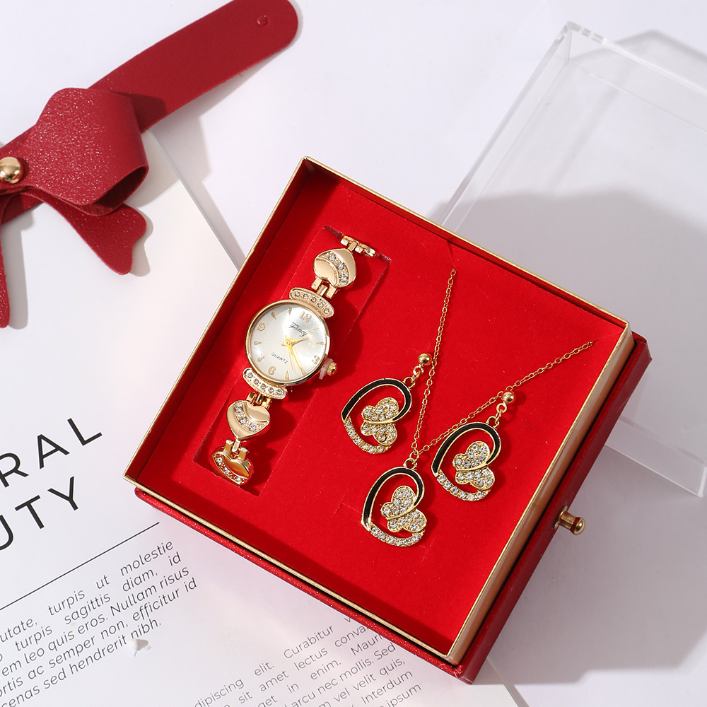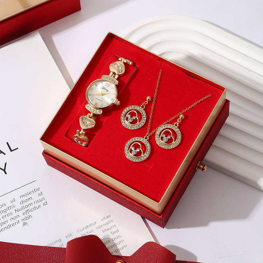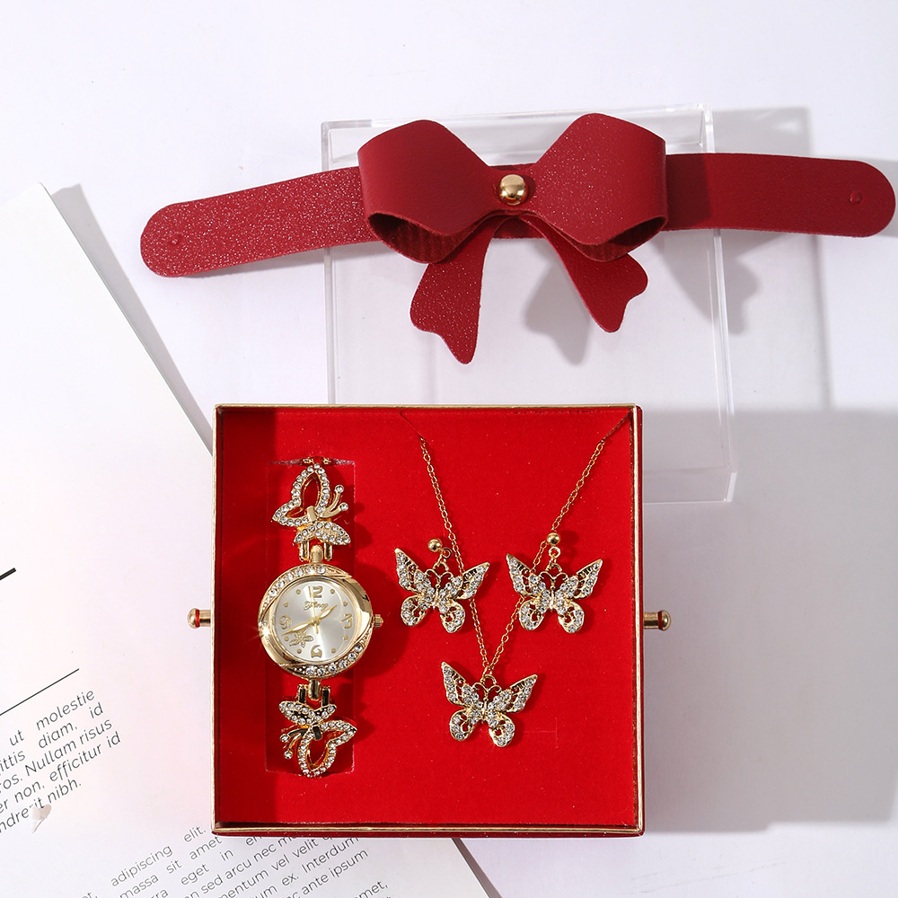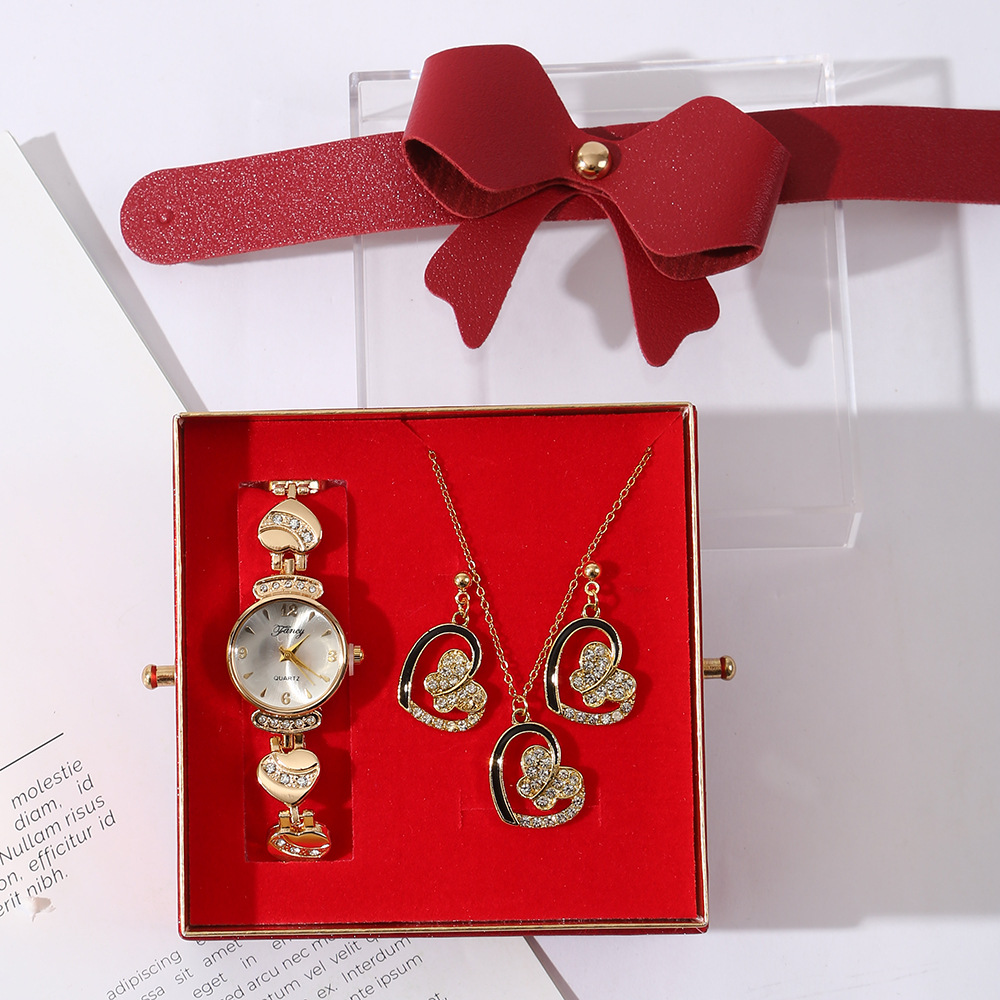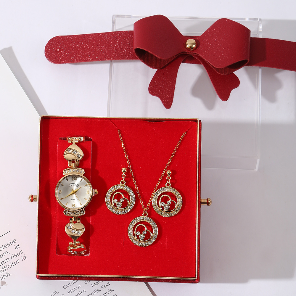 【w2993-5】 4-piece Set (Watch + Necklace + Stud Earrings + Gift Box)