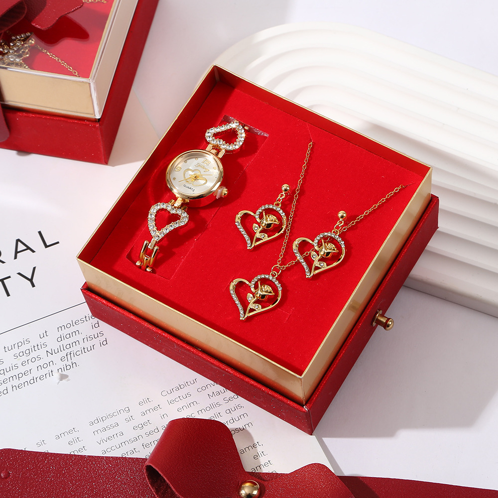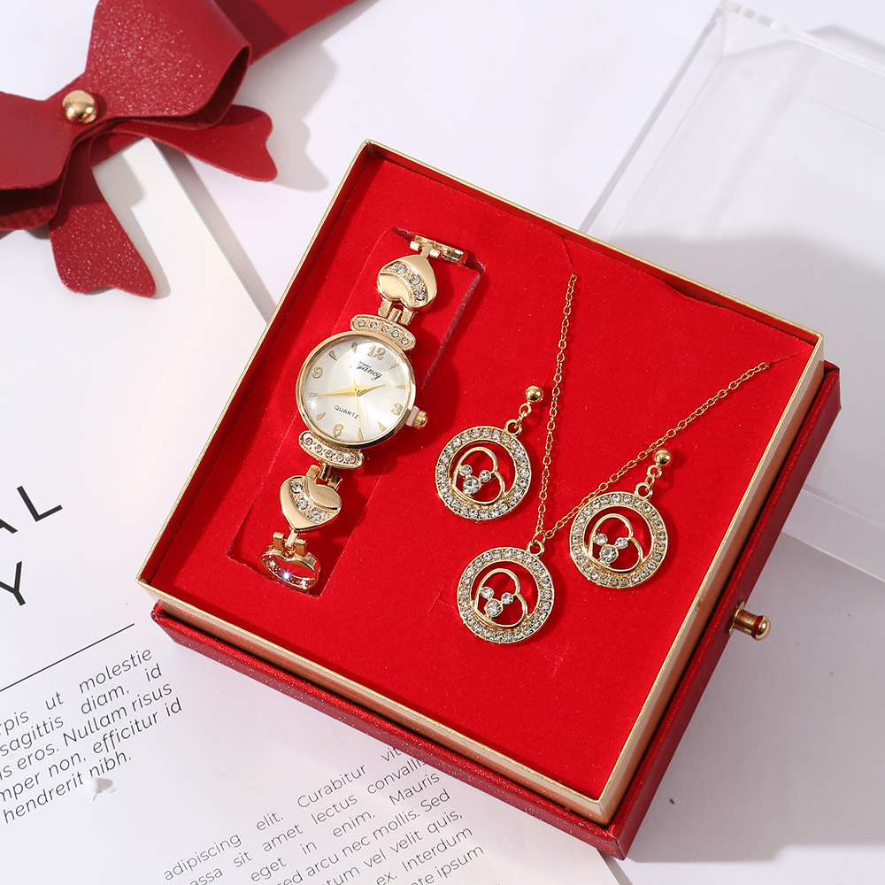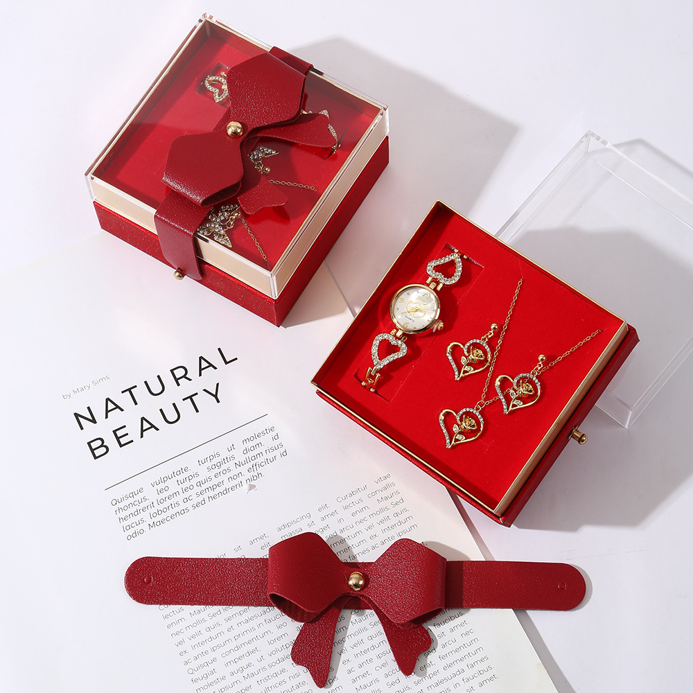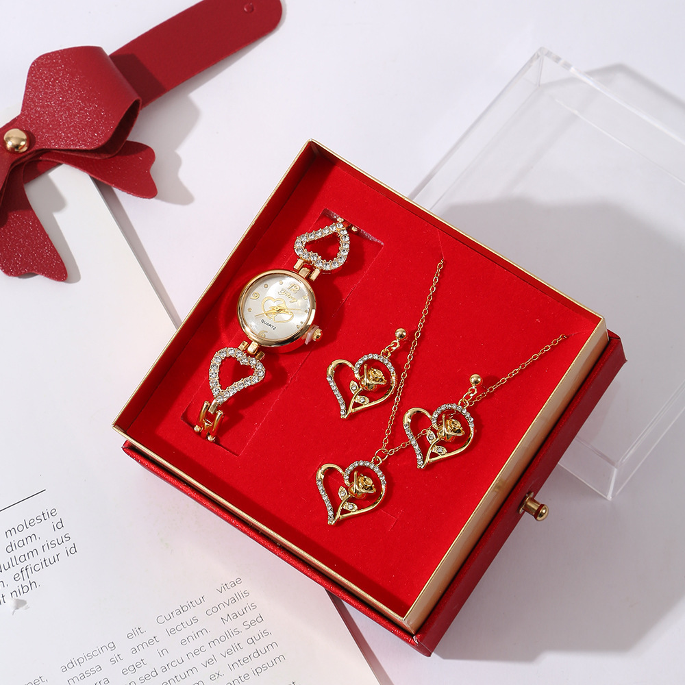 【w2993-5】 4-piece Set (Watch + Necklace + Stud Earrings + Gift Box)
