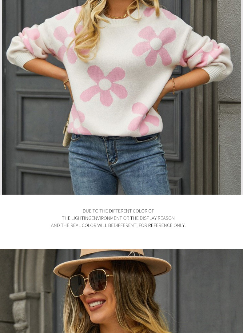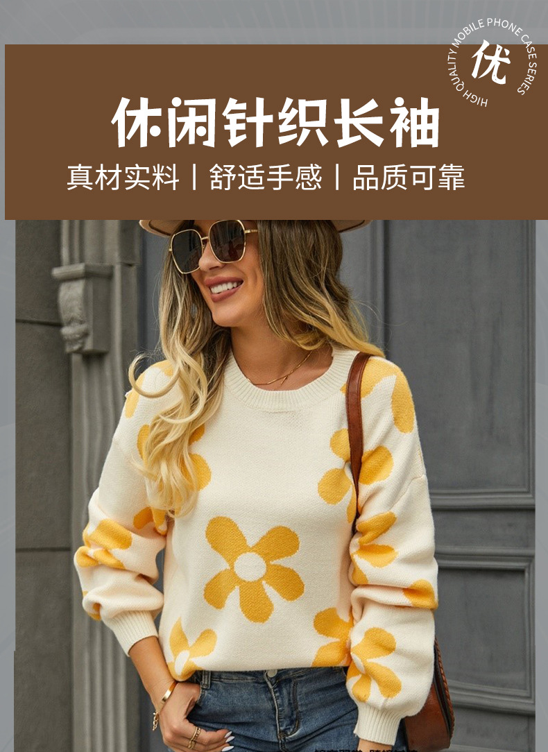 Cross-border women's loose sweater, Tiktok, Amazon export, European and American jacquard pullover, floral sweater for women, Temu