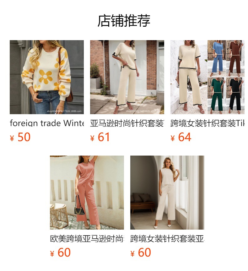 Amazon fashion knitted suits, Tiktok home wear, short-sleeved tops, wide-leg pants, cross-border export to Europe and America
