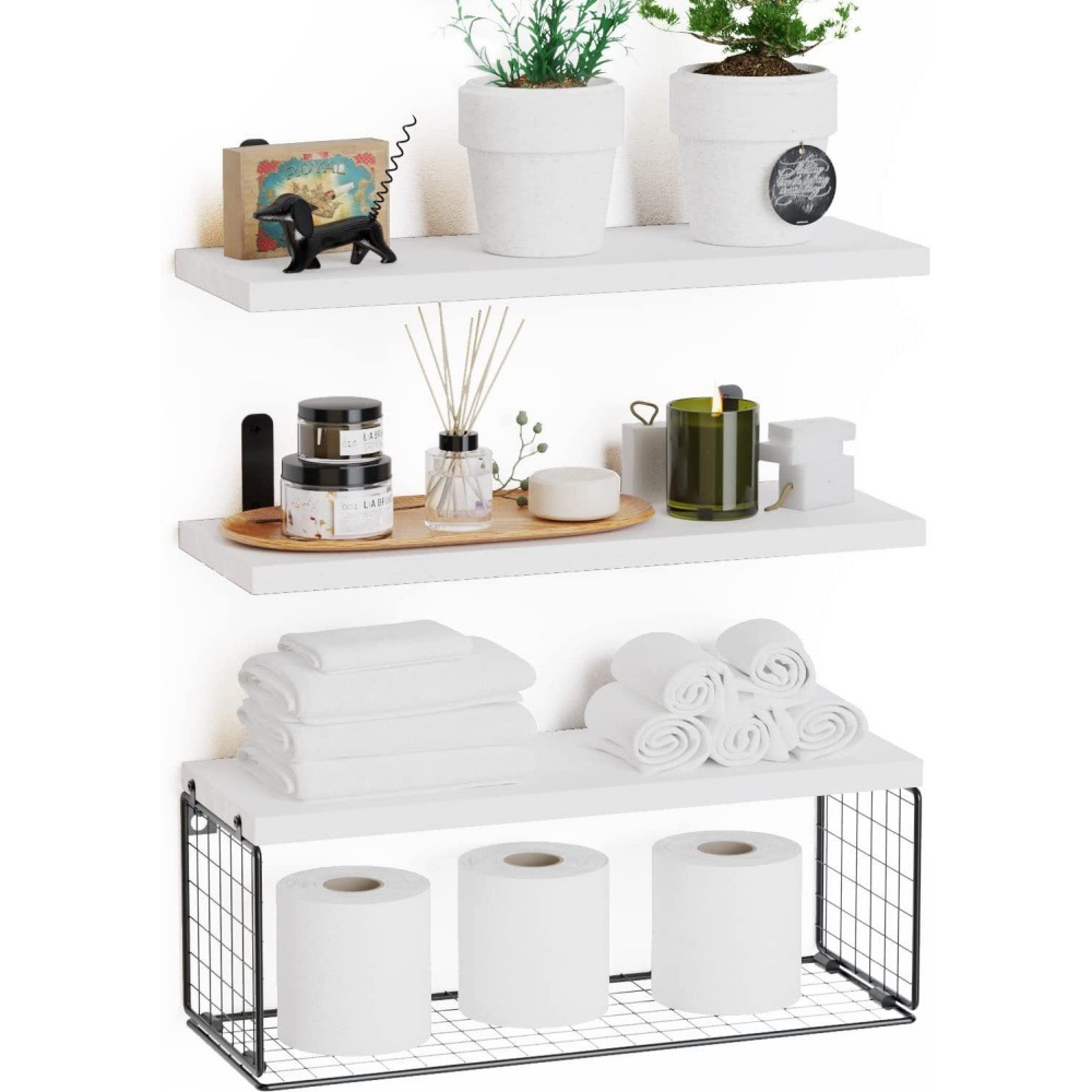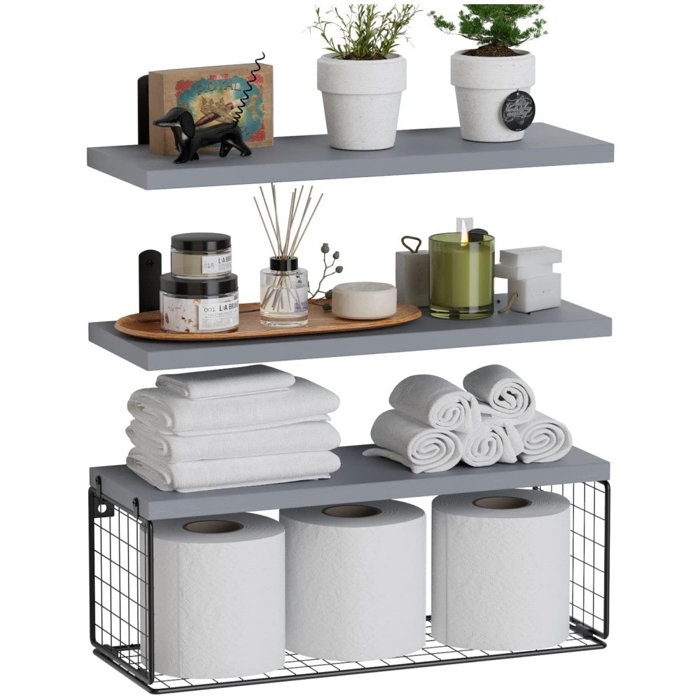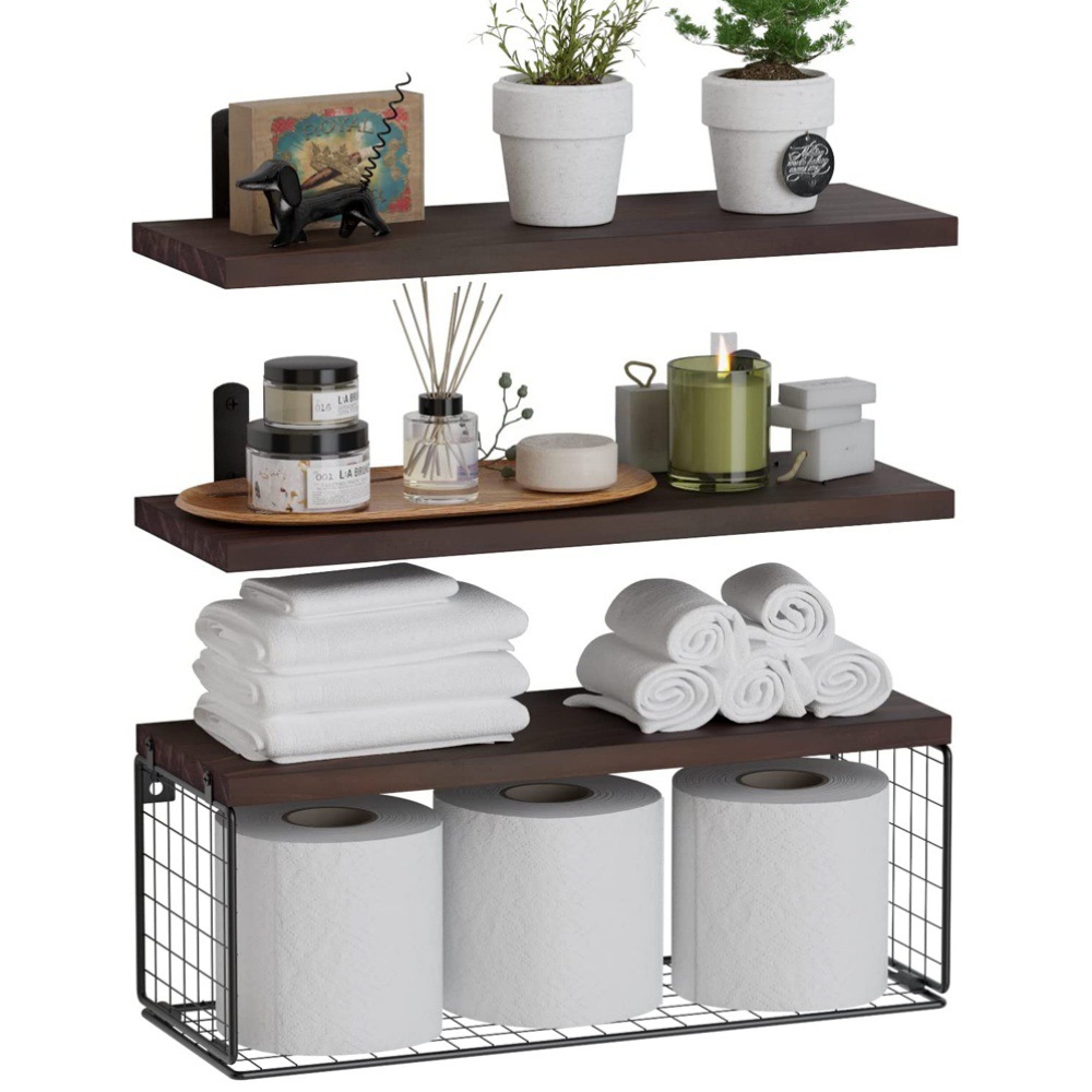 Cross-border wooden wall-mounted suspended rack, multi-layer floating partition rack on bathroom wall, wooden toilet with paper storage basket