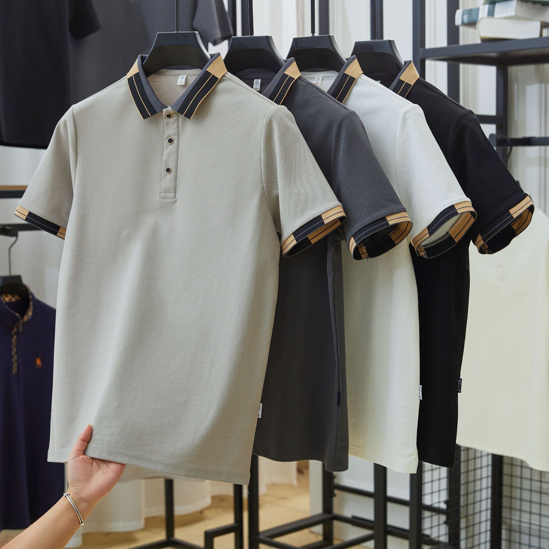 Cross-border yarn-dyed breathable polo shirt for men 2025 Summer new business casual solid color versatile and simple men's T-shirt