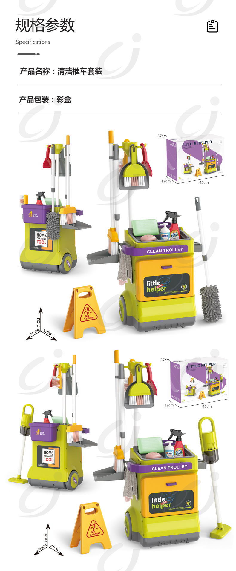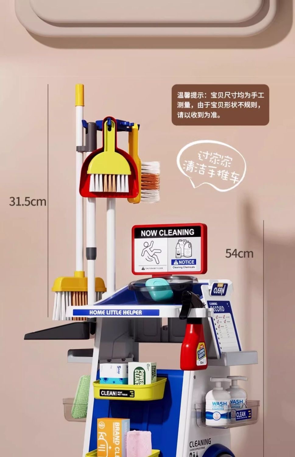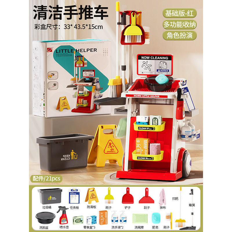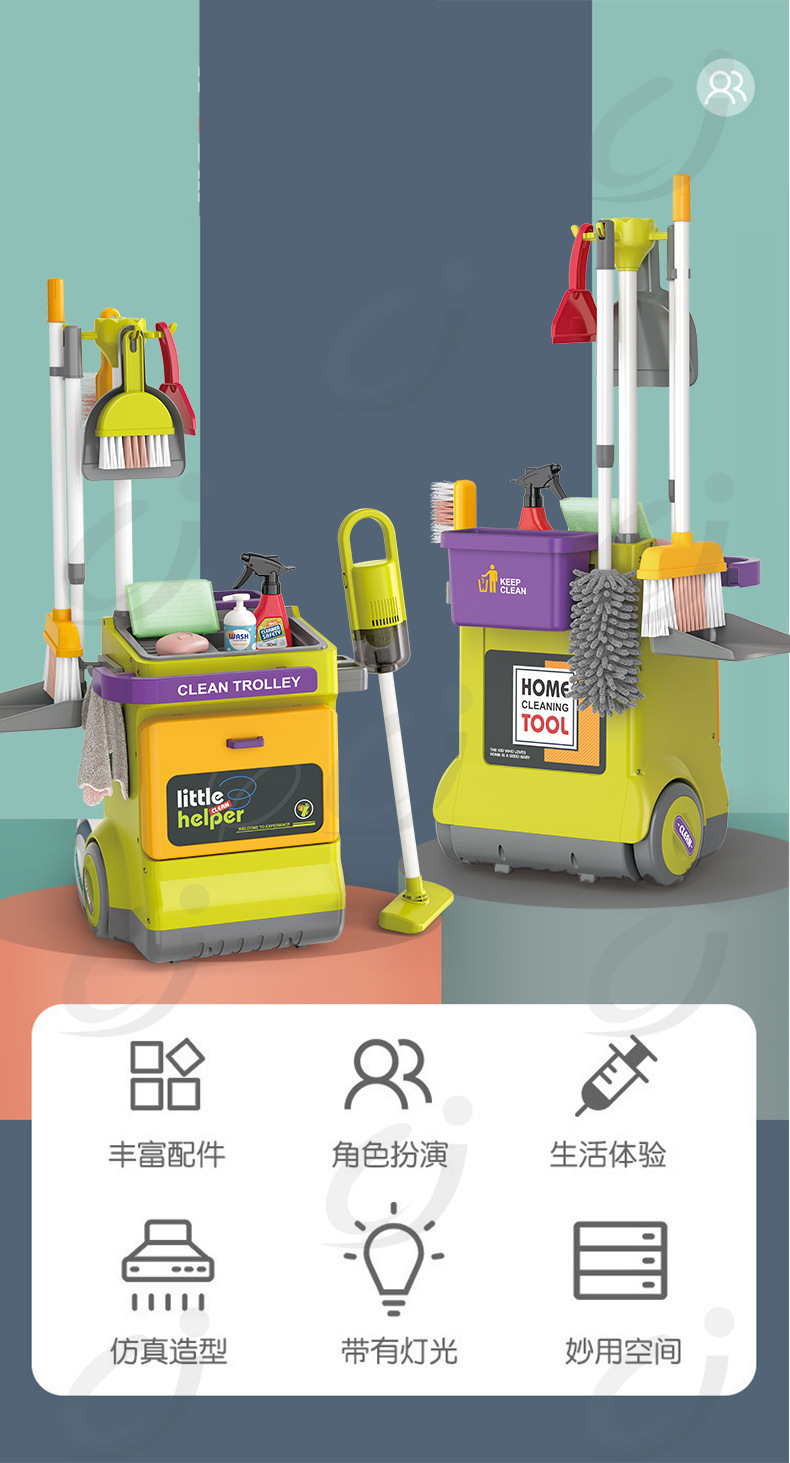 Cross-camera children's simulation cleaning tool trolley set, toys for boys and girls to clean, sweep and play house