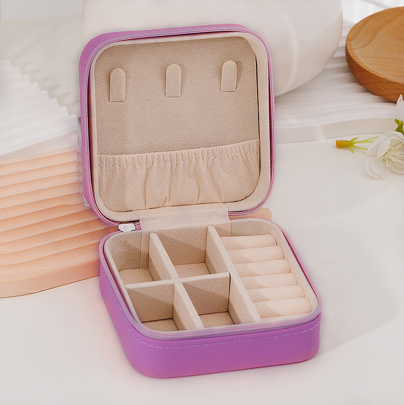 【 Cross Pattern 】 Zipper simple and portable jewelry box, Korean-style ring, stud, storage box, flip cover for easy carrying, small accessories
