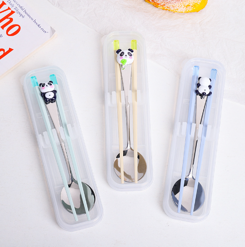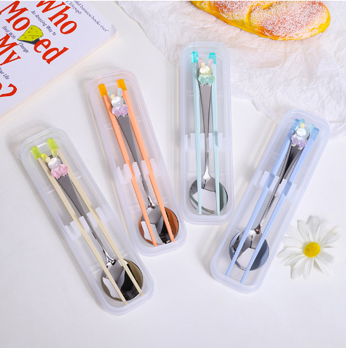 Crystal Rabbit Panda Tableware Set, 304 Stainless Steel Spoon and Alloy Chopsticks Set, Silent Portable Tableware Two-piece Set