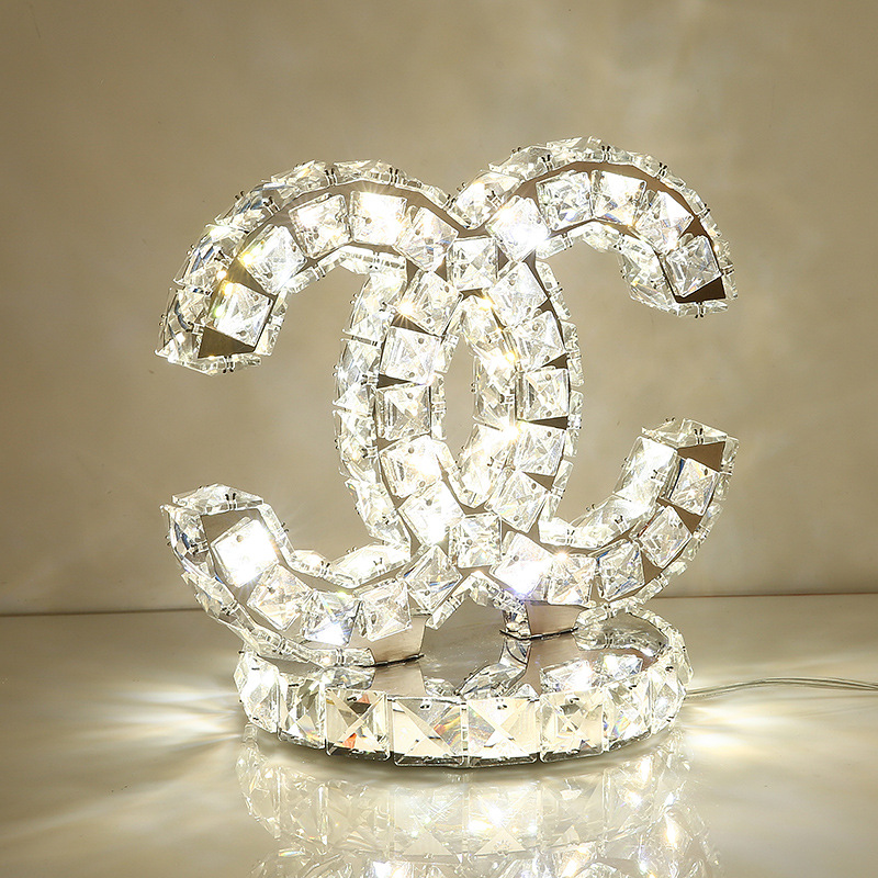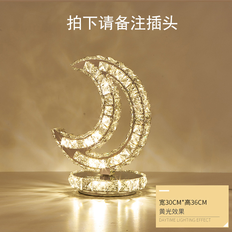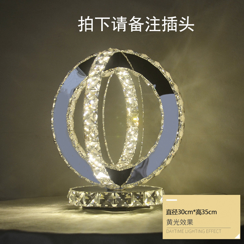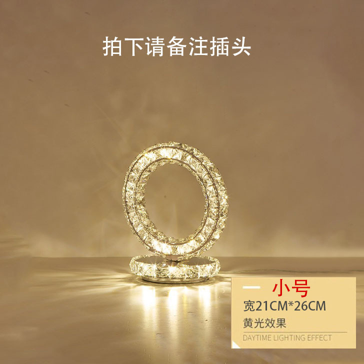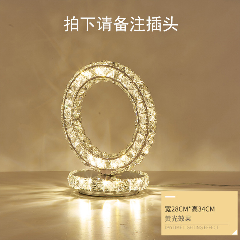 Crystal table lamp, Amazon Creative circle bedroom, hotel bedside remote control dimming and color adjustment decorative LED small table lamp