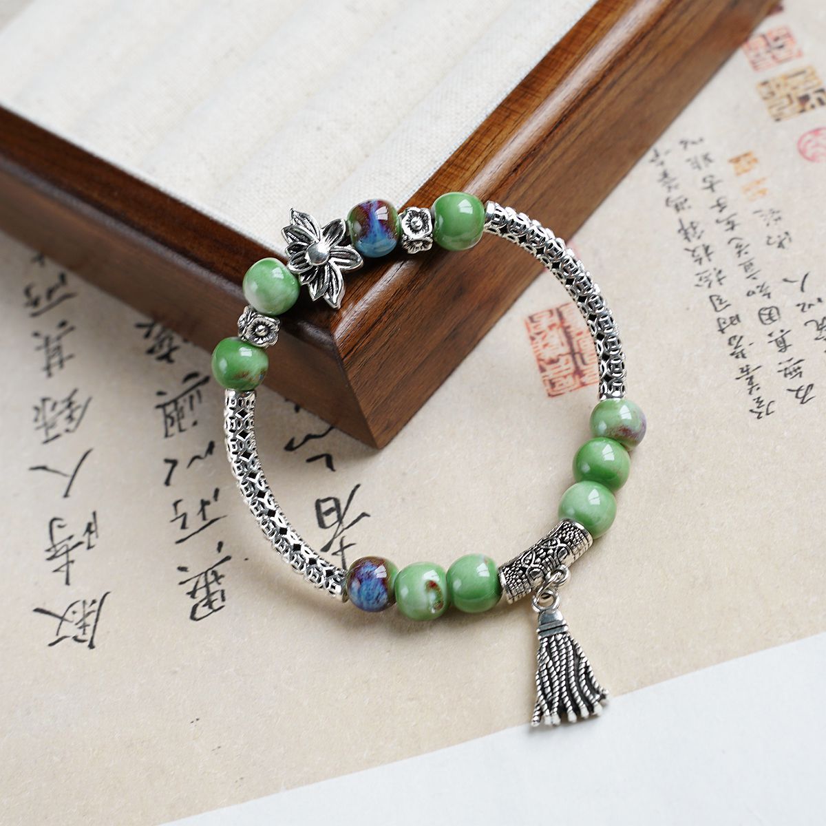 Cultural and creative Jingdezhen ceramic bracelets, ten yuan for three strings, hand-woven new Chinese-style popular ancient-style beaded jewelry wholesale