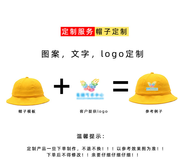 Custom-made solid-color fisherman hats for children's kindergarten primary school students, logo embroidery, safety, and printed "Summer"