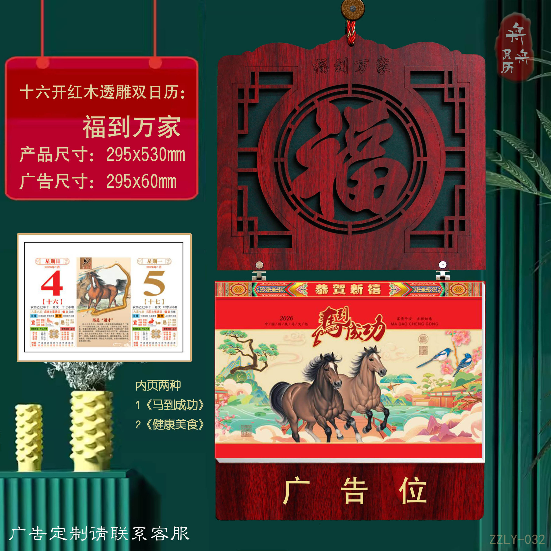 Customized 2026 Year of the Horse nine-page double calendar, imperial calendar, hand-torn calendar, enterprise logo advertisement, gilded gift, yellow calendar