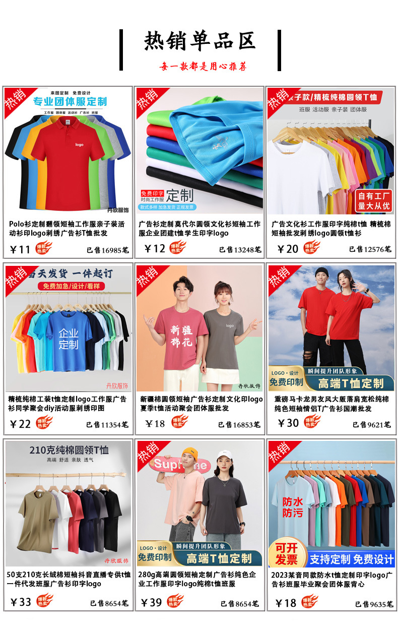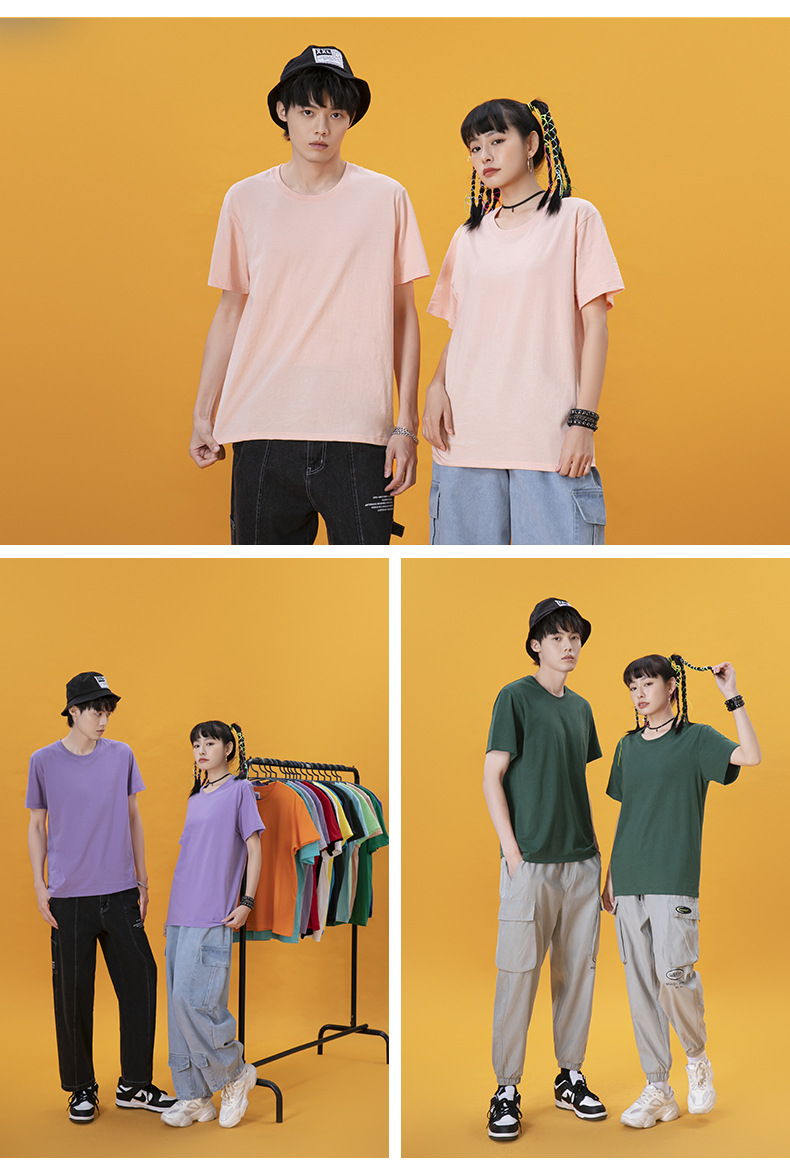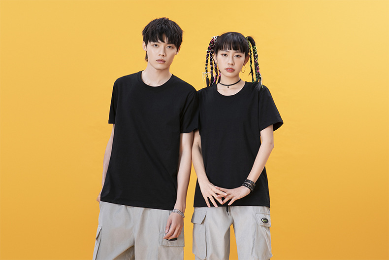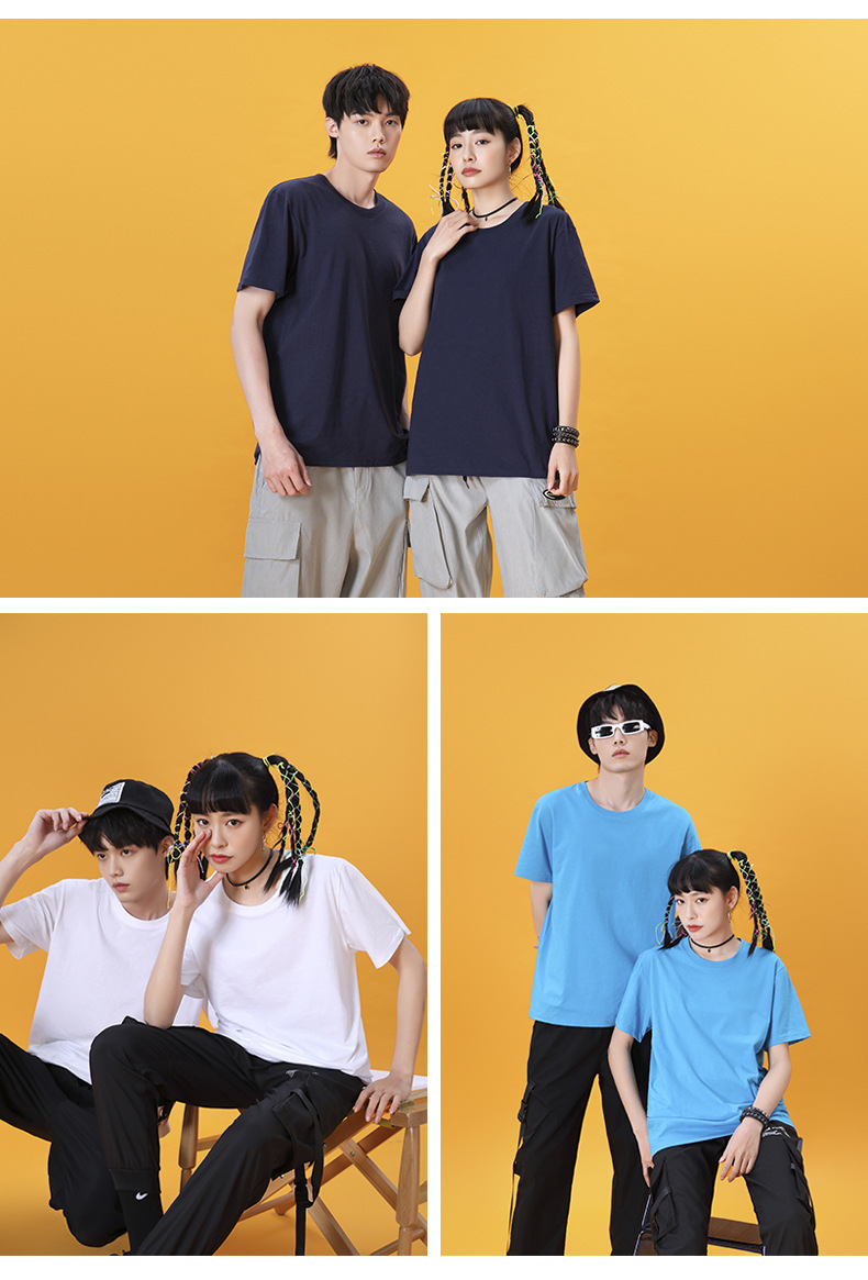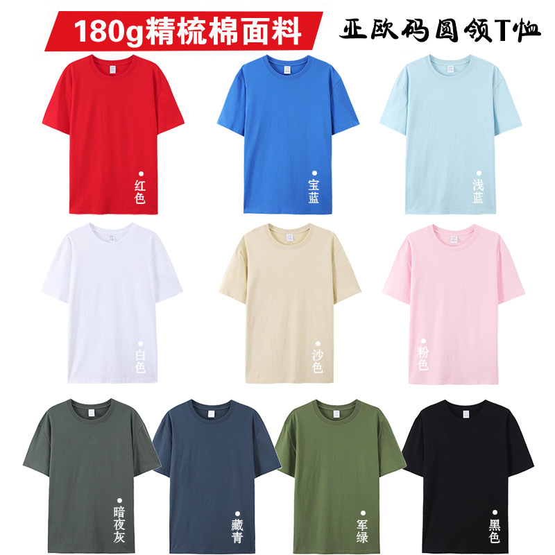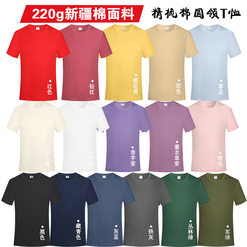 Customized advertising shirts with printed logos, pure cotton round-neck T-shirts, men's solid-color loose short-sleeved cultural shirts, work uniforms