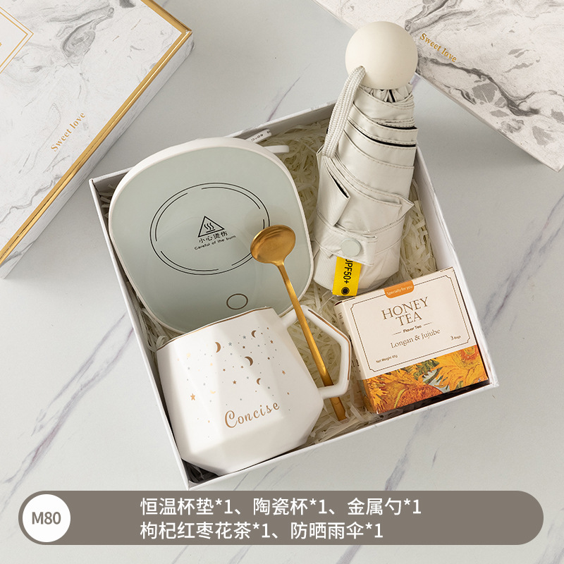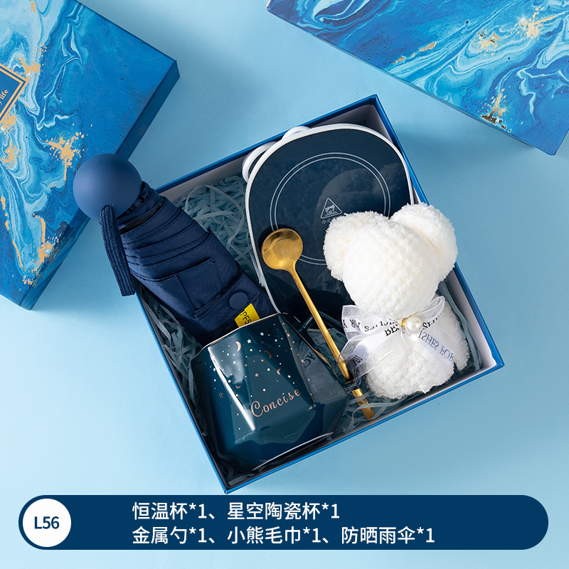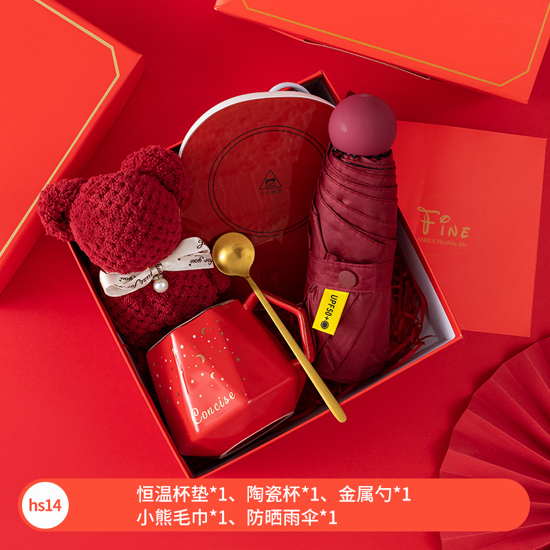 Customized business gifts for company opening, including souvenir cups, New Year gifts, insulated cups, umbrella sets, and logo printing