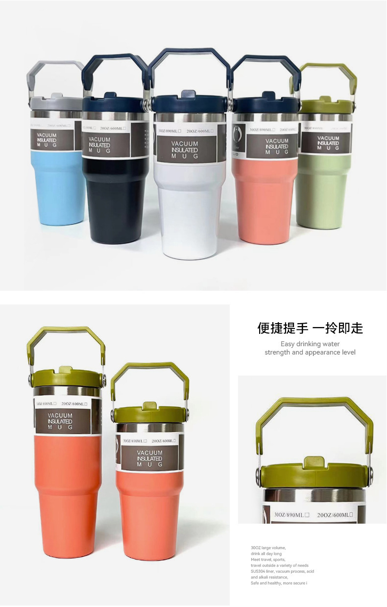 Customized cross-border hand-held car cups, double-layer stainless steel insulated cups, portable car men's and women's outdoor vacuum water cups