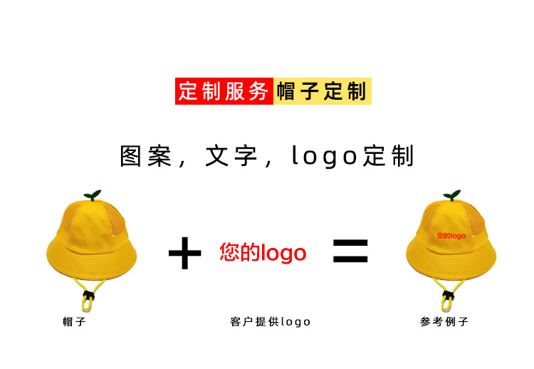 Customized logo printed children's yellow hats, kindergarten yellow hats, pure cotton primary school students' meatball sunshade fisherman hats
