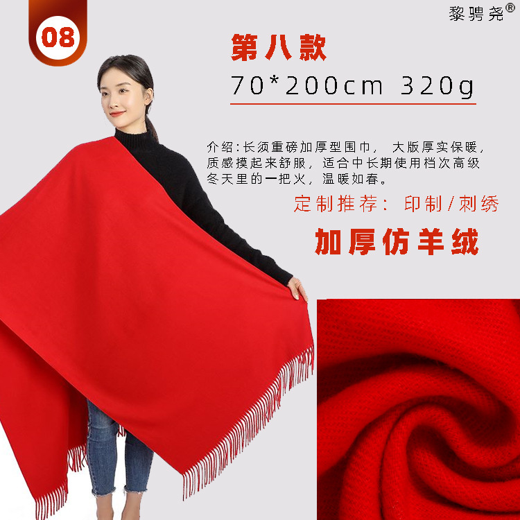 Customized red scarf logo embroidery company, opening party, China red scarf cashmere wholesale, annual meeting scarf printing