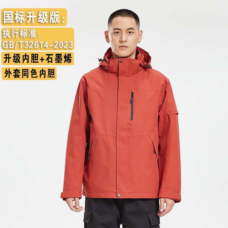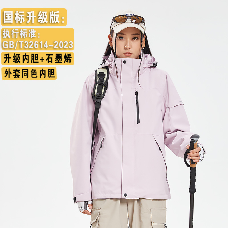 Customized women's three-in-one down jacket and men's outdoor camping windproof and waterproof work clothes of the same style as Bai Xhe