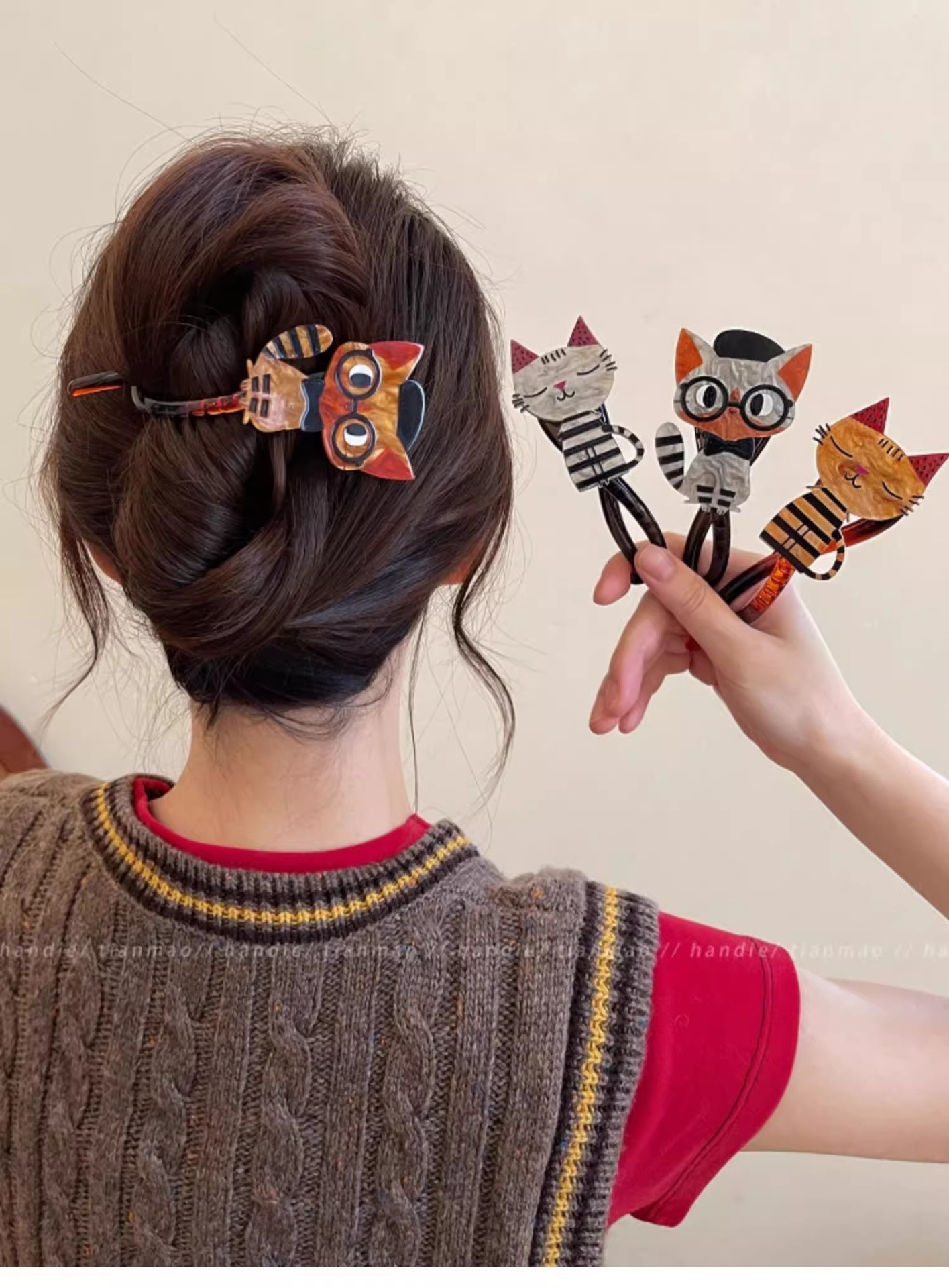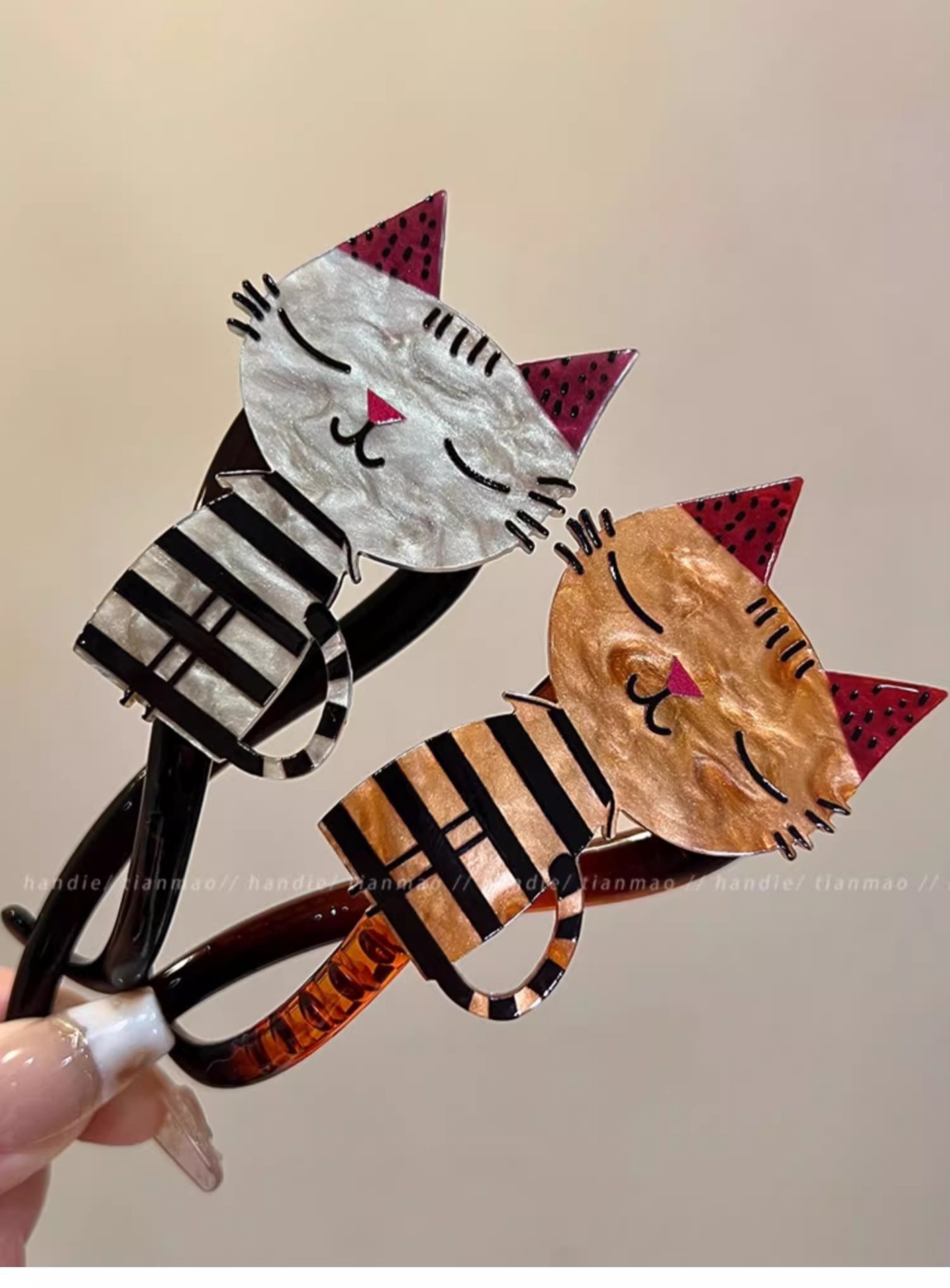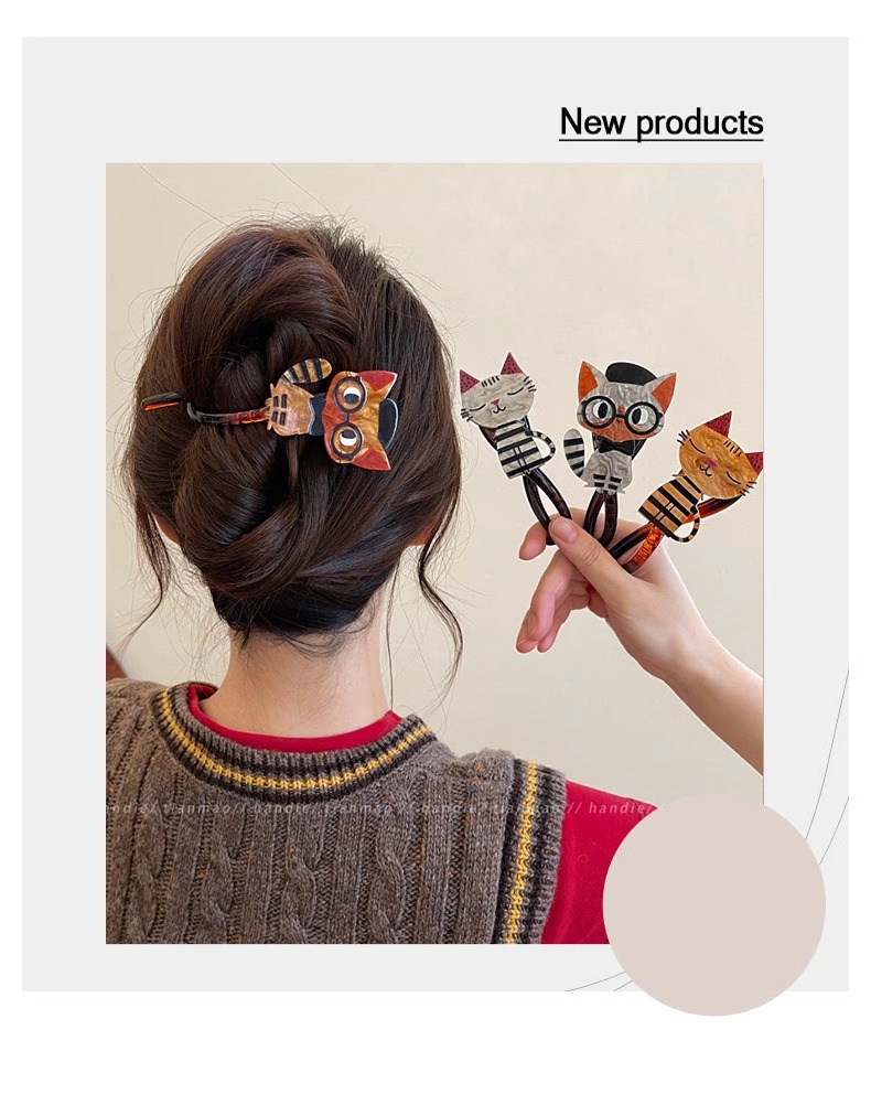 Cute and adorable cat twist clip, high-end hairpin at the back of the head, women's 2024 new one-line scratch-clip updo headwear