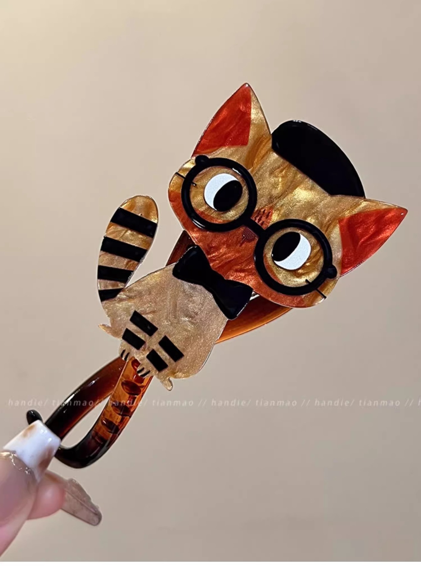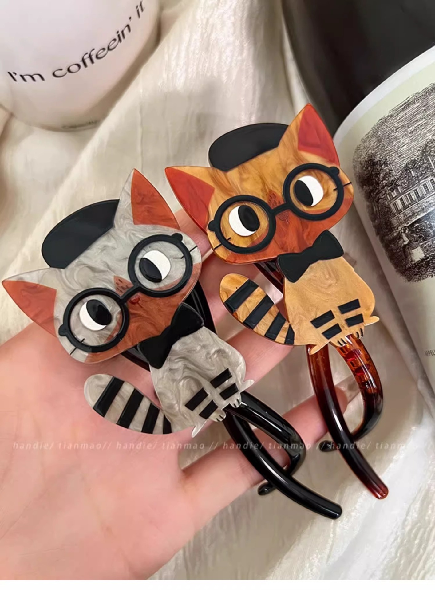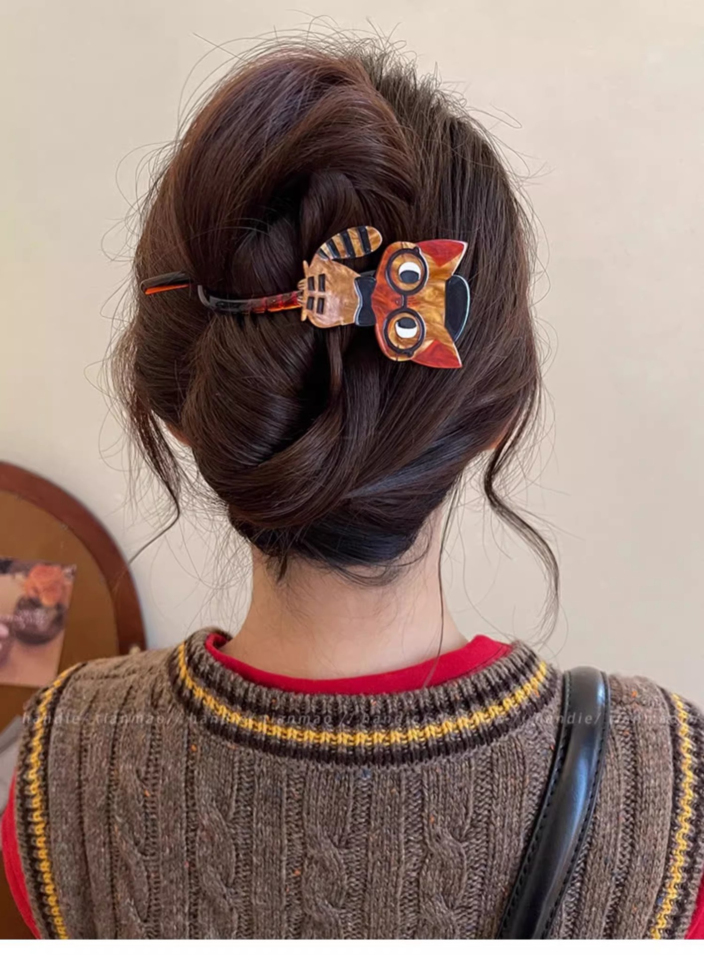 Cute and adorable cat twist clip, high-end hairpin at the back of the head, women's 2024 new one-line scratch-clip updo headwear