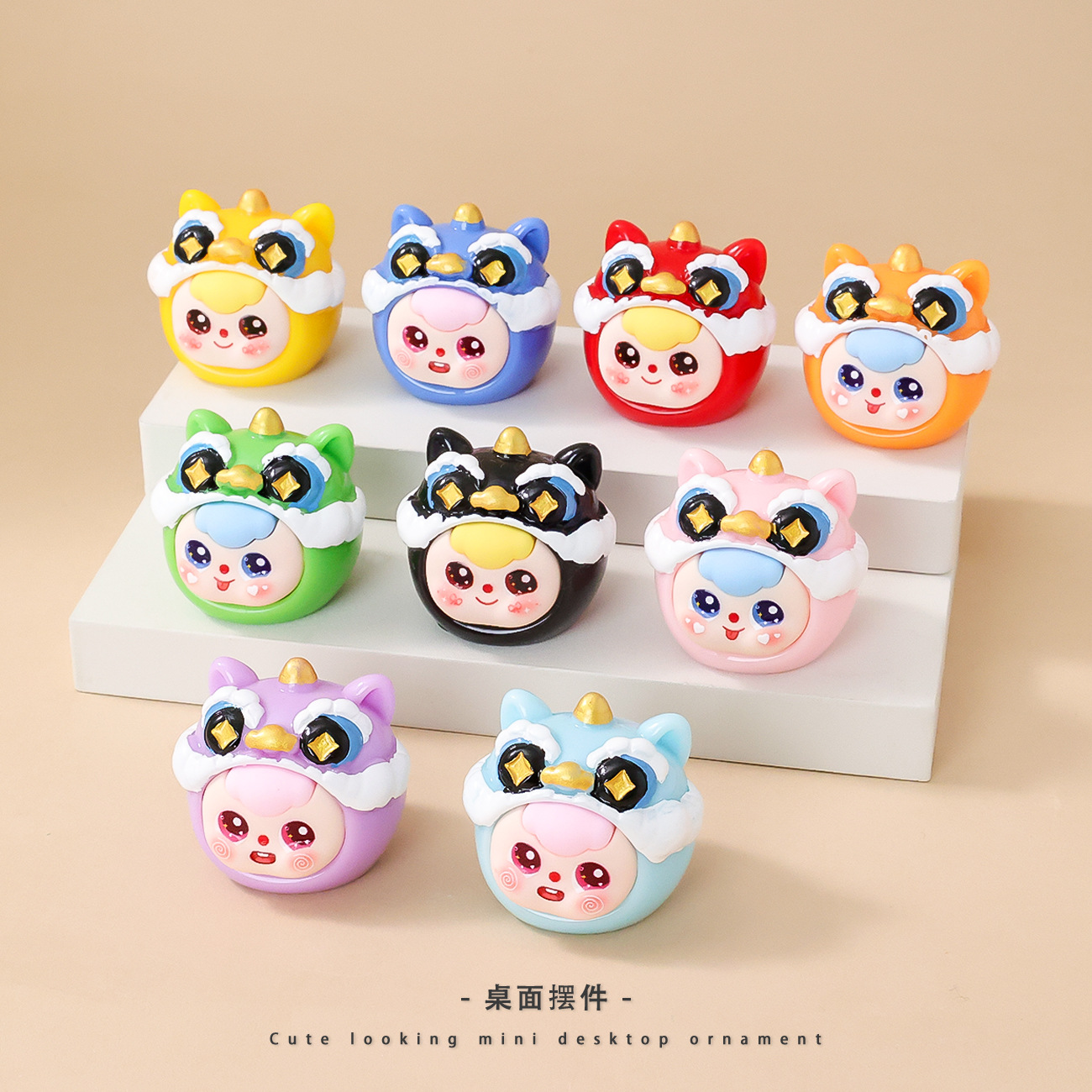 Cute and trendy lion-head figurines paired up, blind bags, desktop car-mounted Chinese-style decorative items, keys and accessories