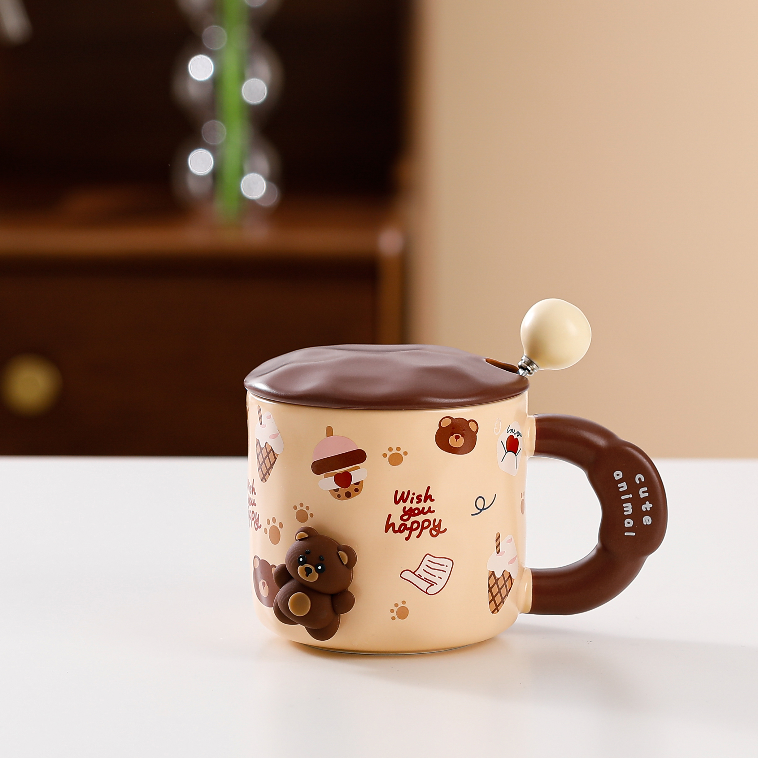 Cute animal mugs with covered spoons, creative DIY water cups, high appearance standards, ceramic cups, coffee cups, and souvenirs for lovers