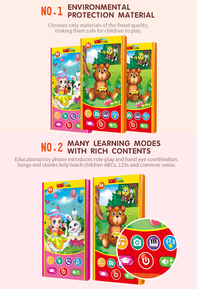 Cute baby children's smart early education machine, cartoon learning mobile phone, girl rabbit eating honey bear, music story, educational phone toy