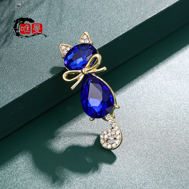 Cute blue crystal brooches with trendy cat designs from Japan and South Korea, diamond-encrusted, and unique designs. Sweet and elegant, popular online accessories