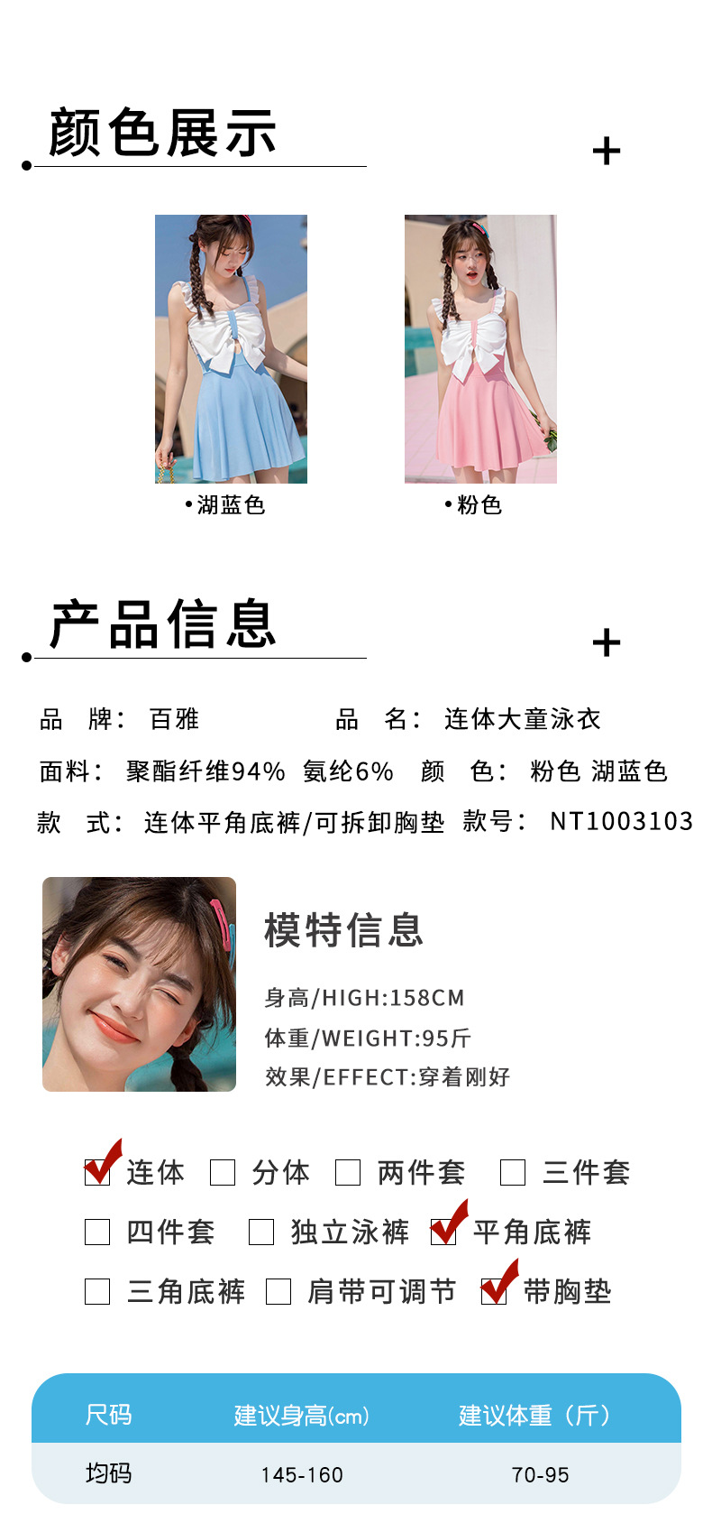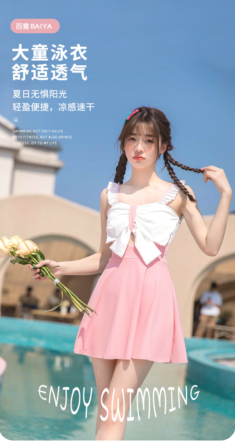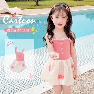 Cute children's swimwear for girls, new sweet and fresh one-piece swimwear for medium and large children, sun protection girls' hot spring swimwear, NT $1003103