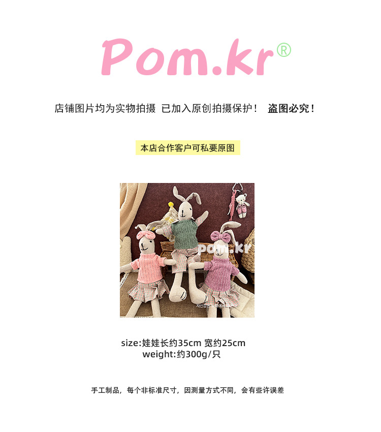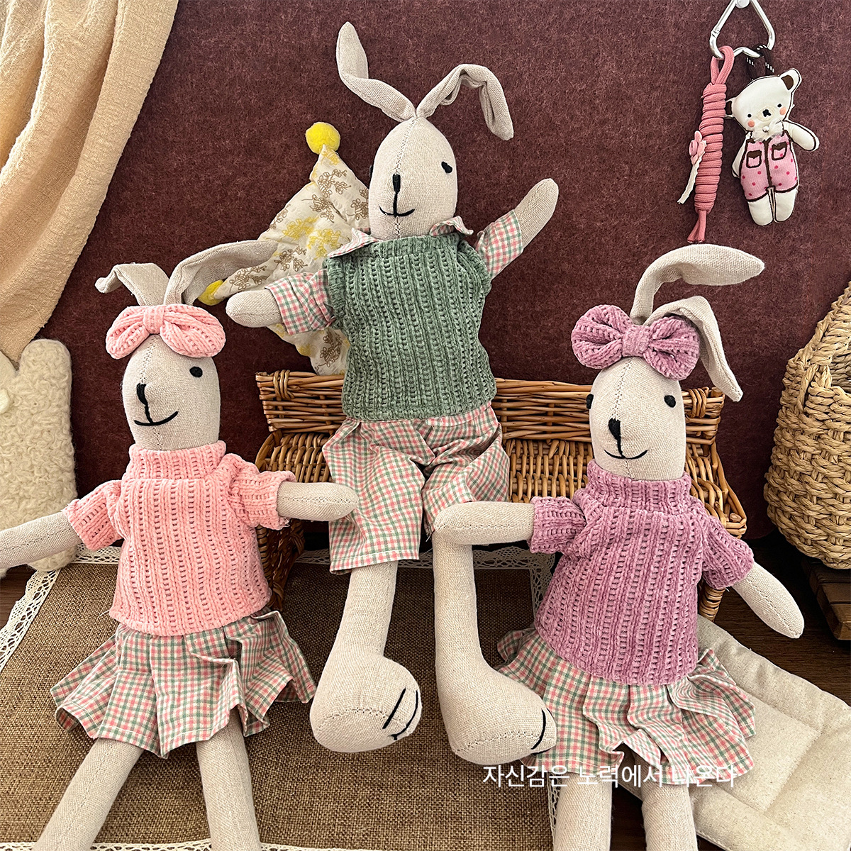 Cute Korean-style cartoon cotton and linen handmade rabbit dolls, children's soothing toys, stuffed dolls, birthday gift items