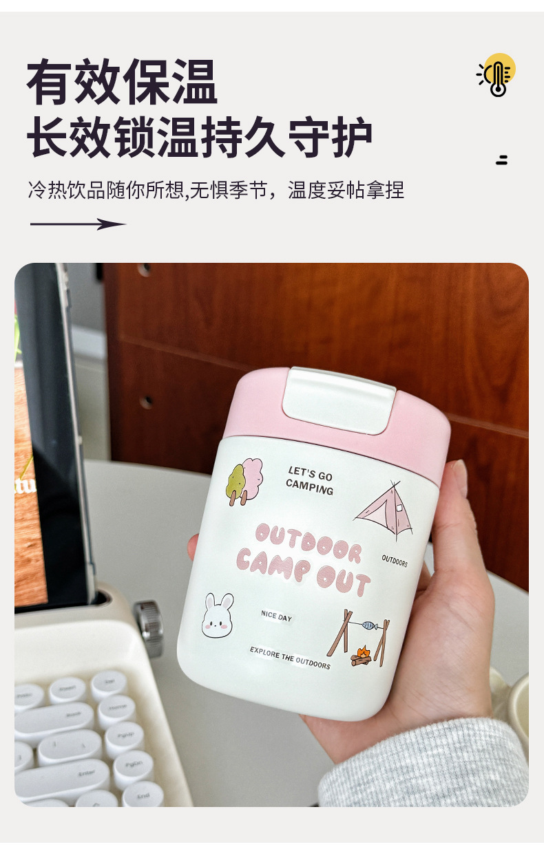 Cute mini children's insulated cup with high appearance level, stainless steel water cup, student camping style coffee cup, portable for takeout