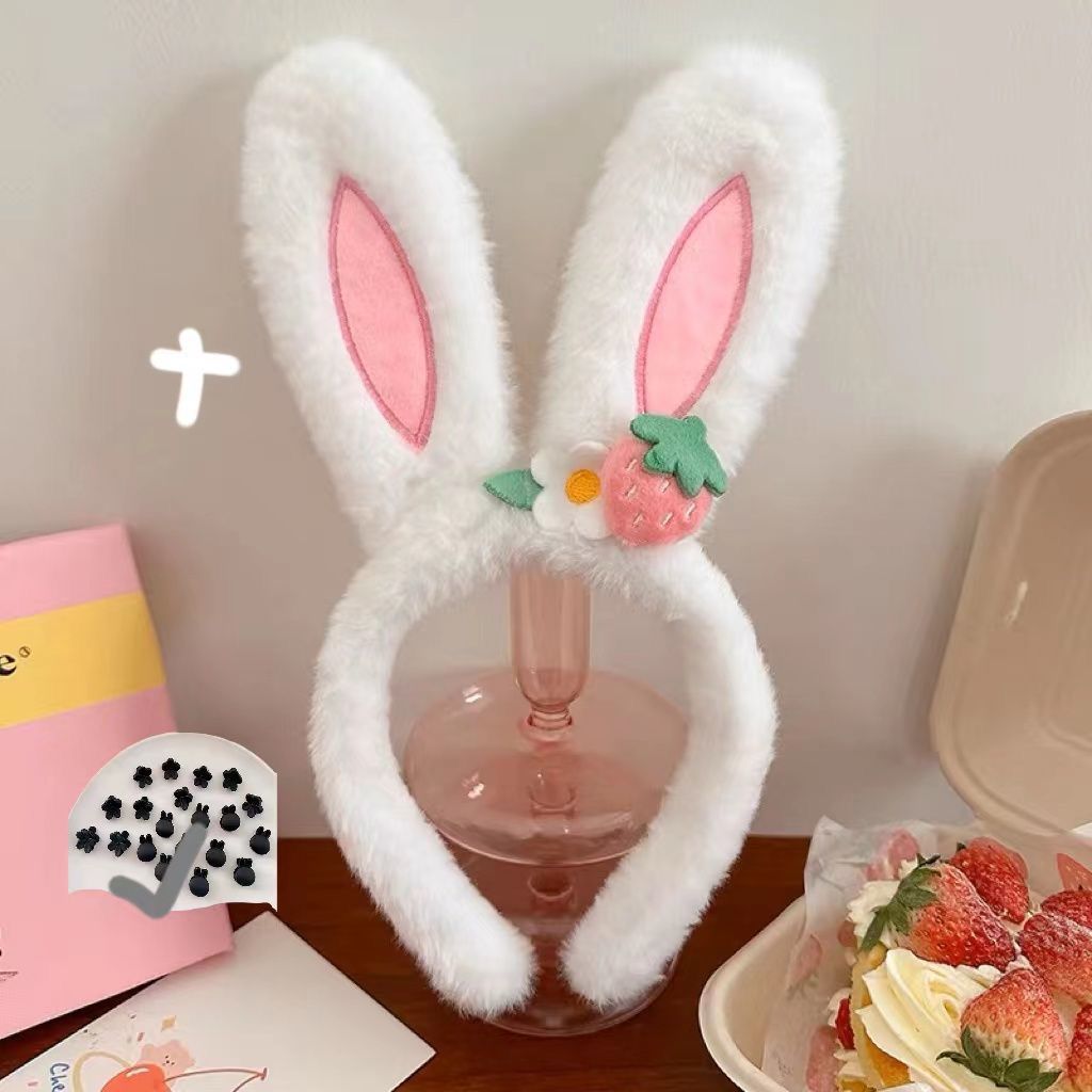 Cute plush heart-shaped rabbit ear hair band, face wash headband, adult headwear, cartoon little rabbit hair clip, hair accessory, sweet girl
