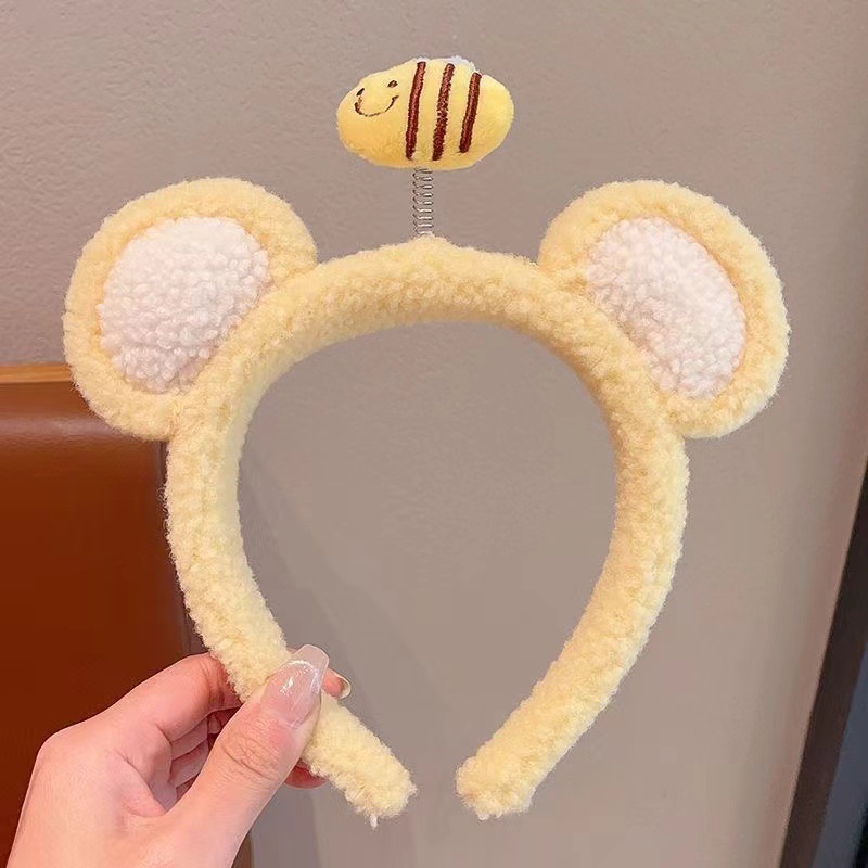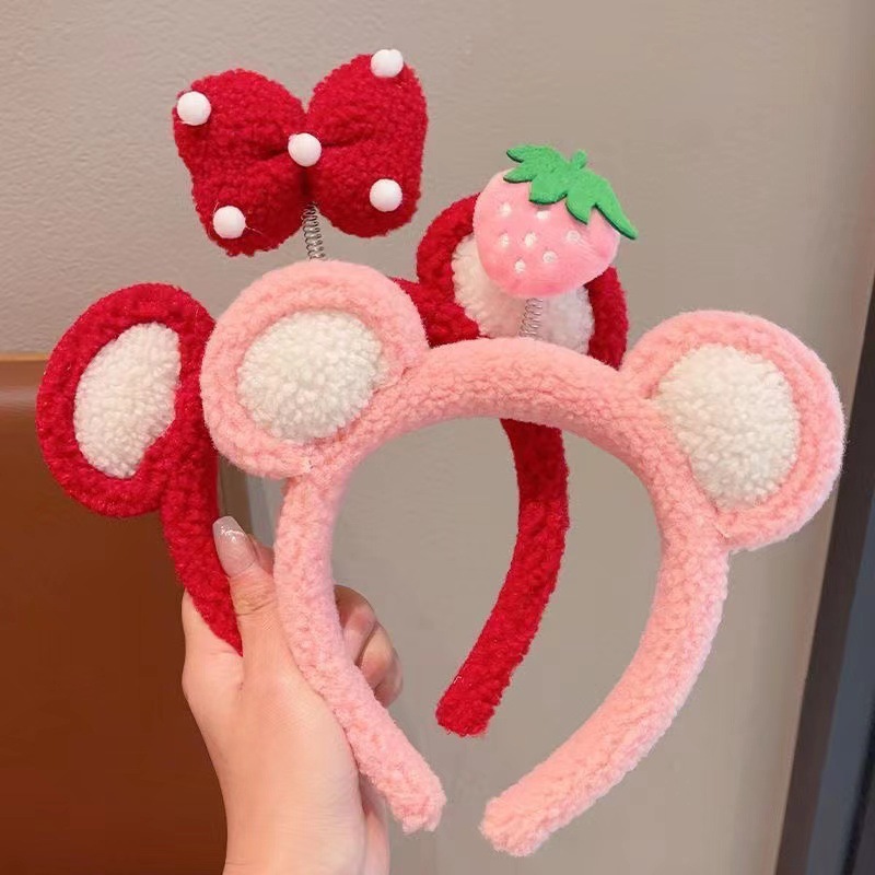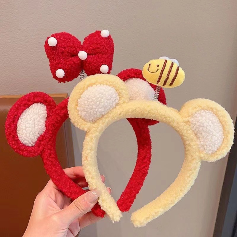 Cute three-dimensional plush bee headband, sweet girl's hair clip, bow, strawberry cartoon headband, hair accessory for girls