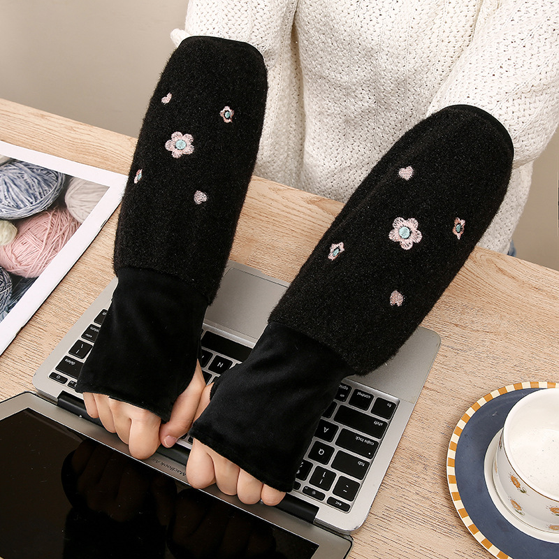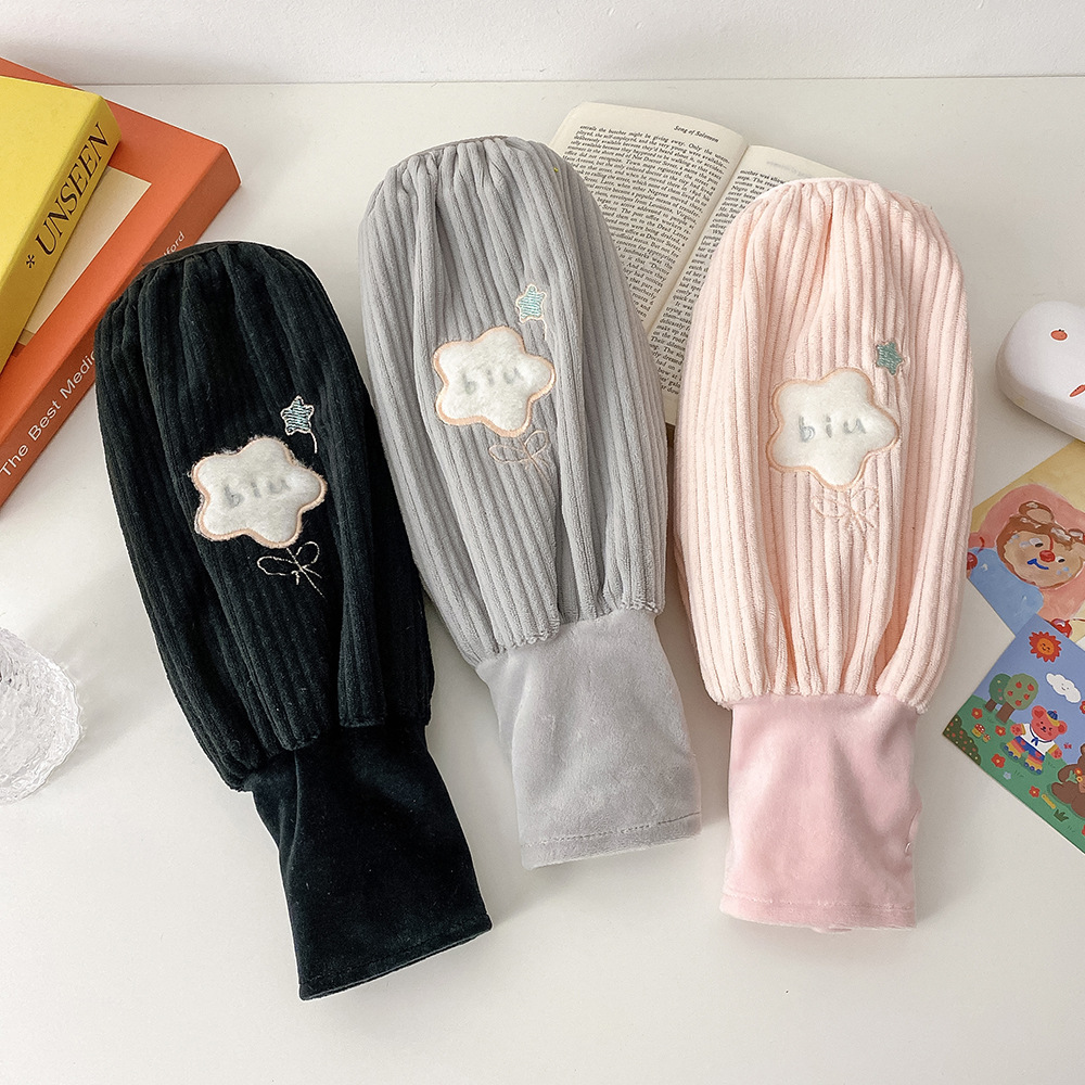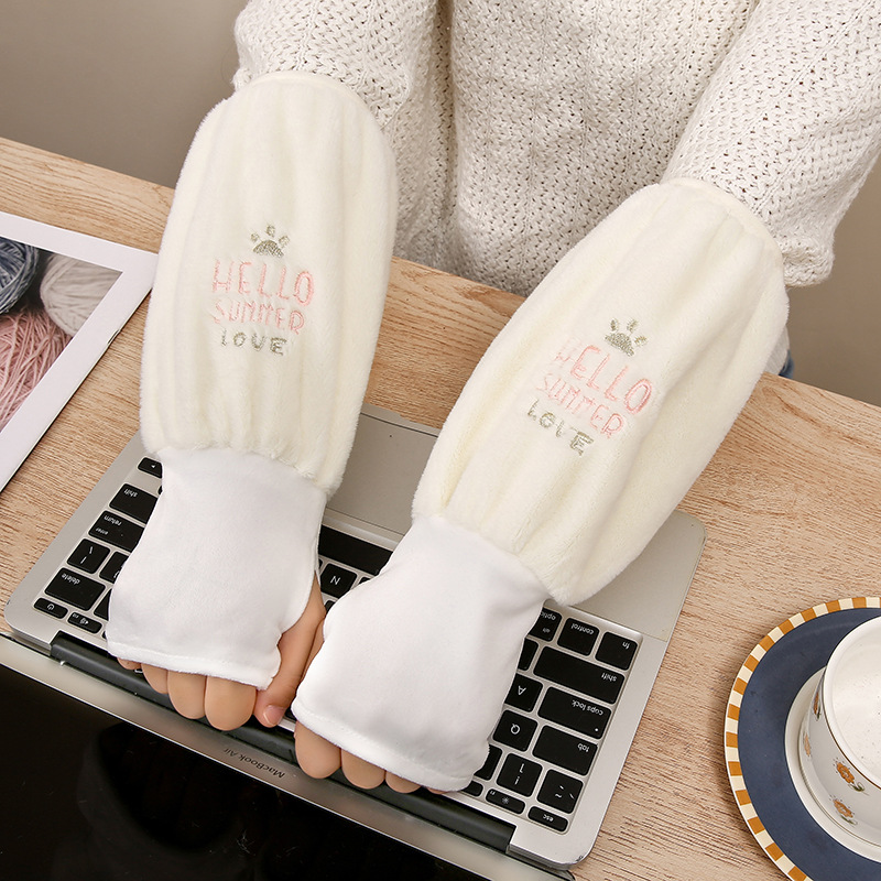 Cute warm hand sleeves for women, long work anti-dirt sleeves, student sleeves, winter two-in-one plush gloves sleeves