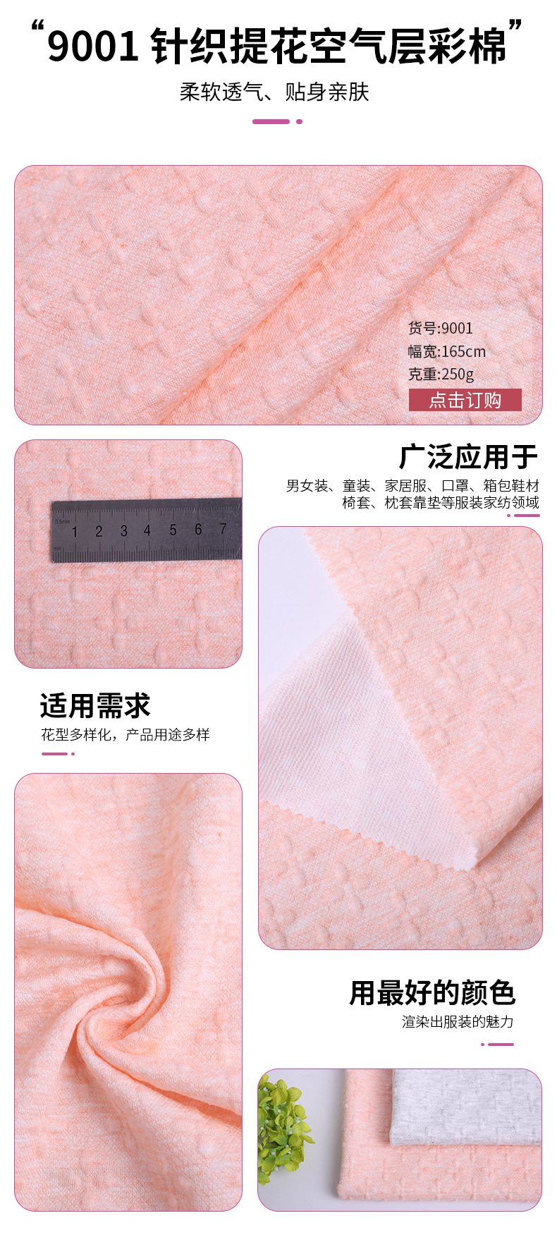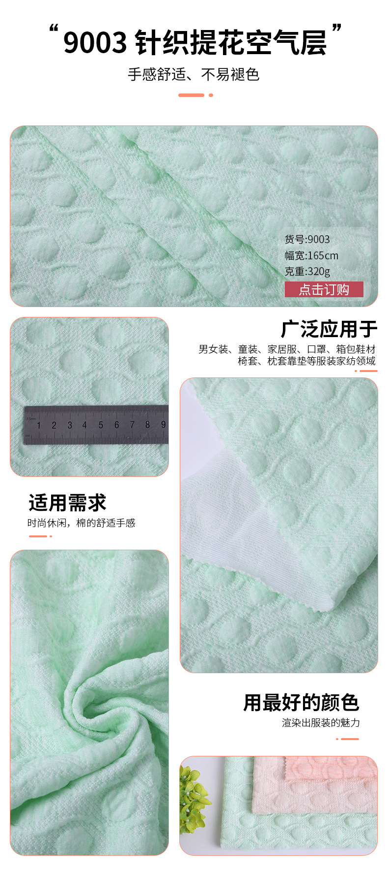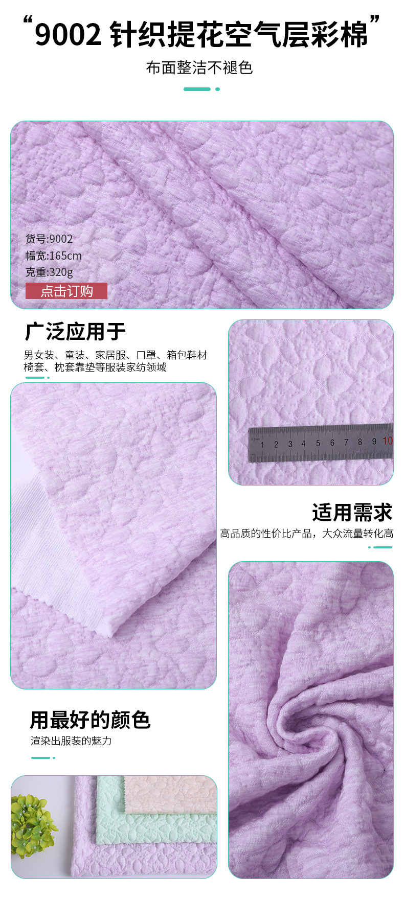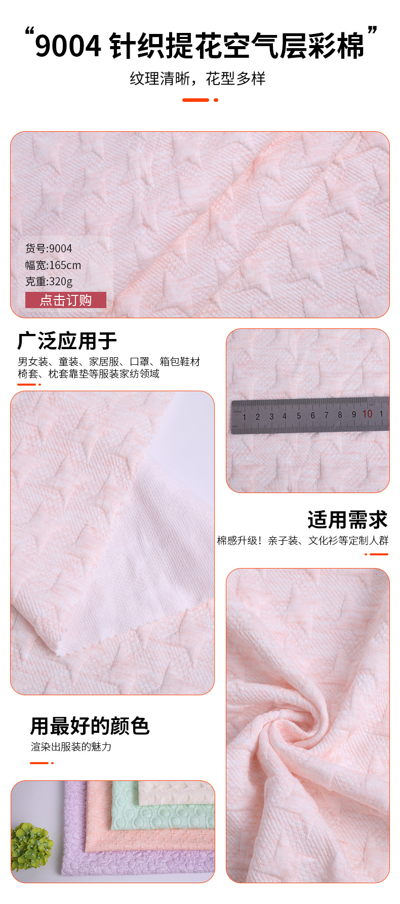 CVC knitted air layer 250g autumn and winter home wear, children's wear, pajamas with cotton fabric, colored cotton jacquard knitted surface