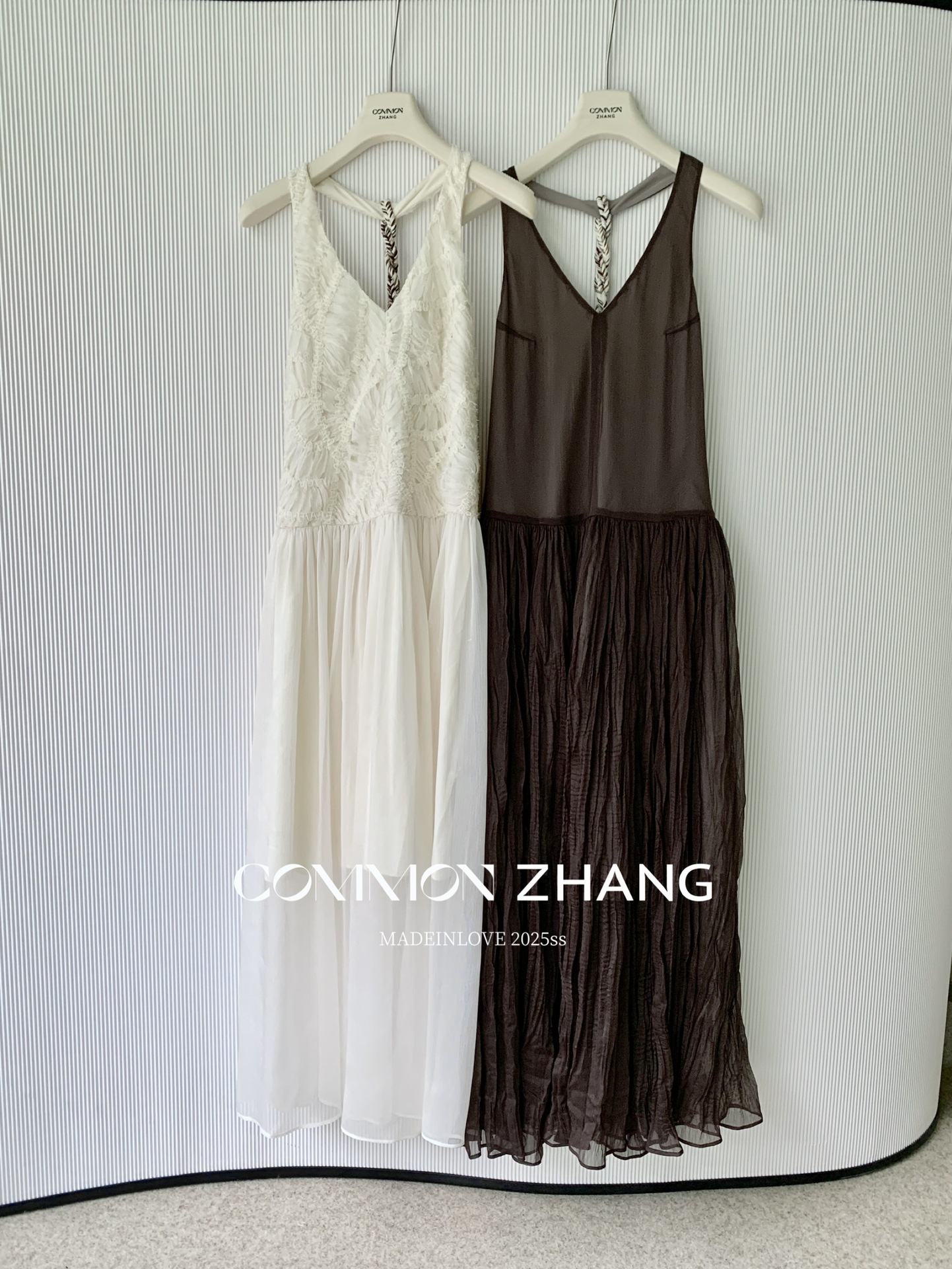 CZ ZHANG Mocha Mousse retro pleated V-neck dress Texture backless slightly transparent long dress B26987