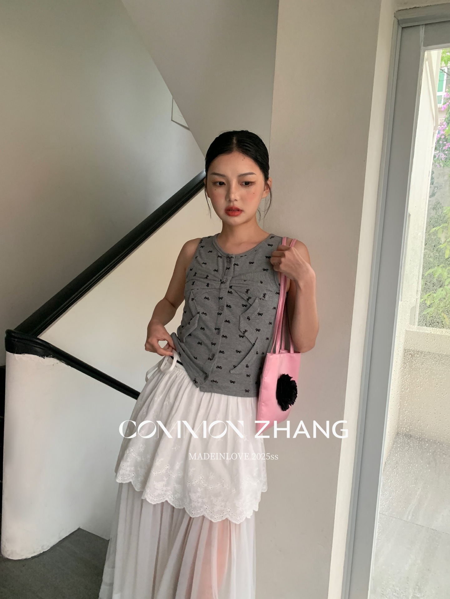 CZ ZHANG's summer Korean-style sweet and youthful girlish sleeveless round-neck bow polka dot blouse for girls A23876